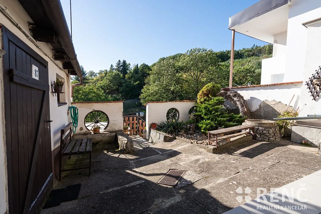 Nemovitost tvoří hlavní obytná část – jednopodlažní zděný dům s půdní vestavbou, uzavřený dvůr včetně dvou teras s krásným výhledem do okolí a terasovitá zahrada, která se svažuje do údolí k potoku Hloušek.