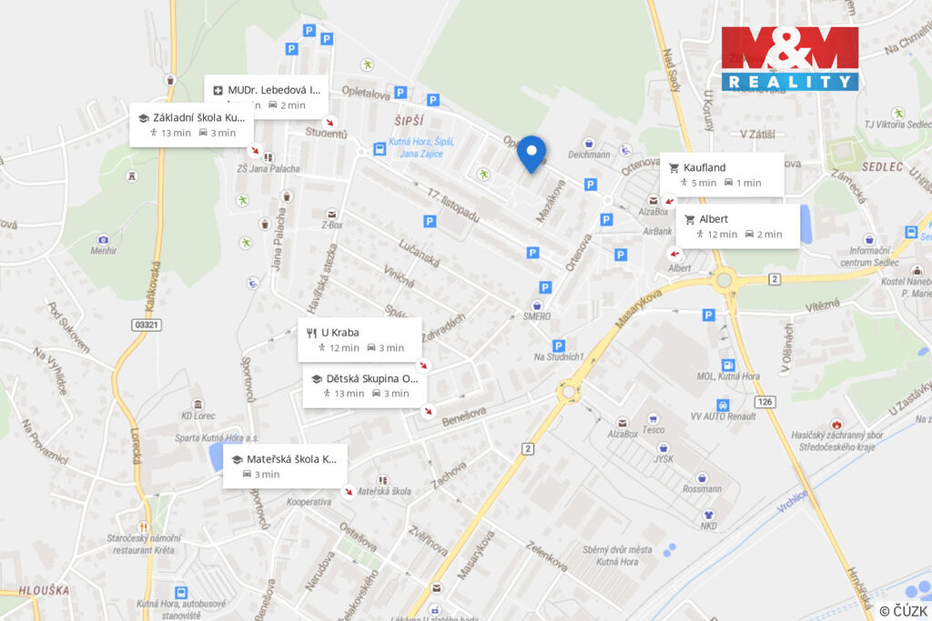 V Kutné Hoře je dostupná veškerá občanská vybavenost. V blízkosti bytu jsou obchody, základní a mateřská škola, dětské hřiště, zastávka MHD.