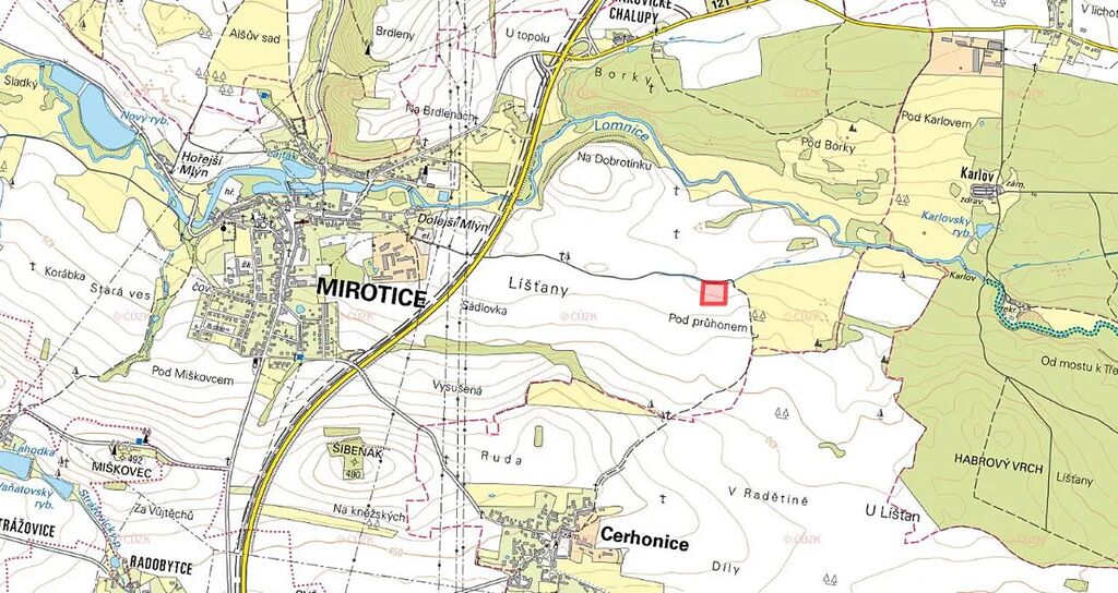 V katastrálním území Mirotice v okrese Písek nabízíme k prodeji pozemek ve výlučném vlastnictví. Parcela č. 1805 je zapsaná na LV 1269. Pozemek se nachází v rovinatém terénu.