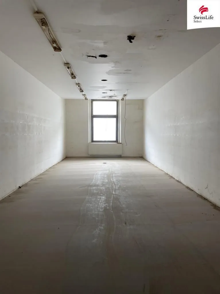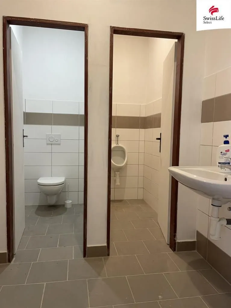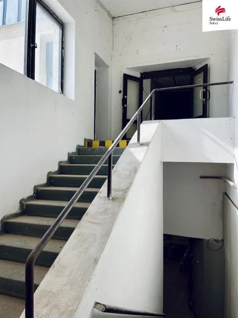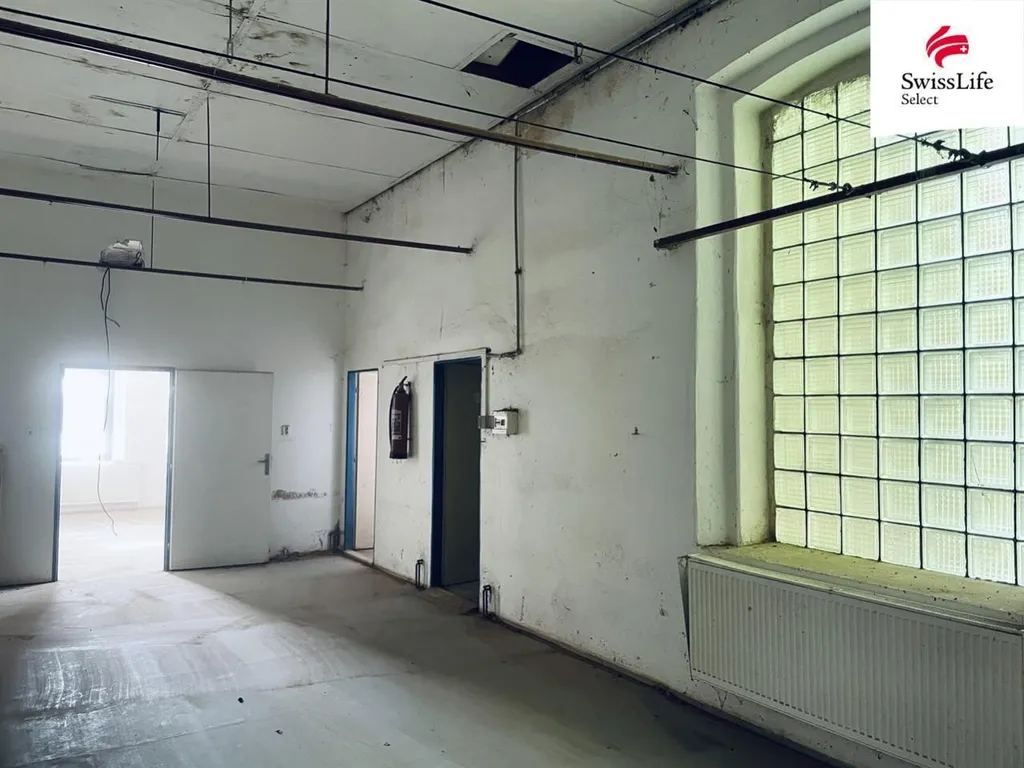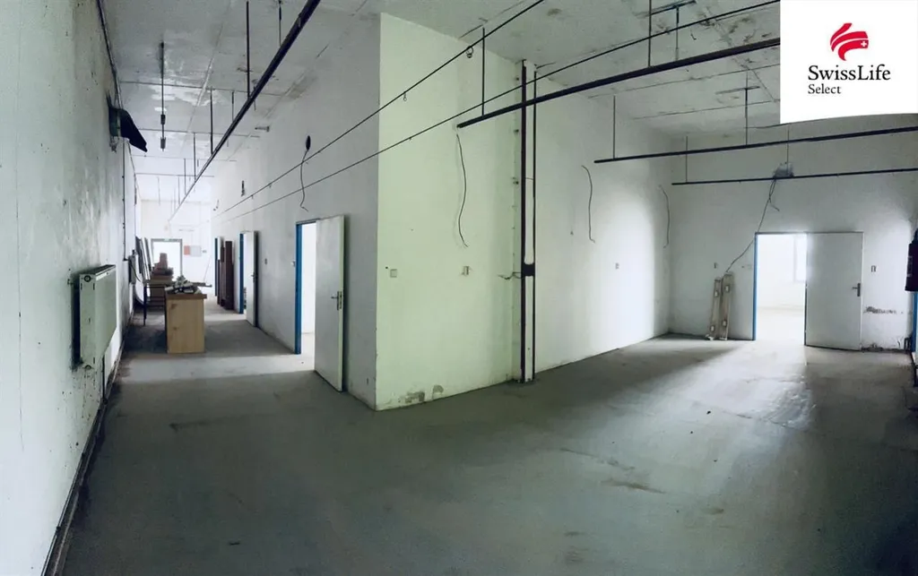 Administrativní zázemí nabízí 3 pěkné kanceláře (16 m, 16 m a 18 m), příjemnou denní místnost se světlíkem 26 m, kde je i kuchyňka, dále archiv/spisovnu se světlíkem (22 m). Zázemí administrativy potřebuje drobná dokončení, zalití a finalizaci podlah, výměnu oken a interiérových dveří. Rozvody vody a elektřiny jsou v této části také kompletní. Nové vchodové dveře.