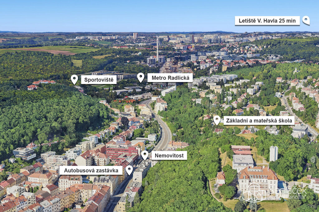 Dopravní dostupnost je vynikající – přímo před domem je tramvajová zastávka, metro Anděl i Radlická jsou vzdálené jen dvě zastávky. Do centra města se tak dostanete během několika minut.