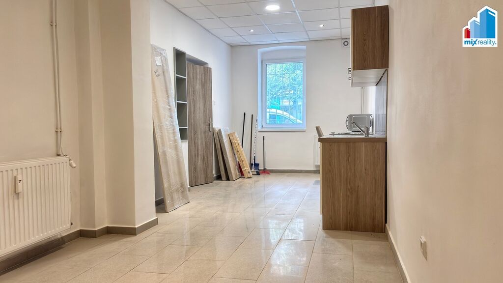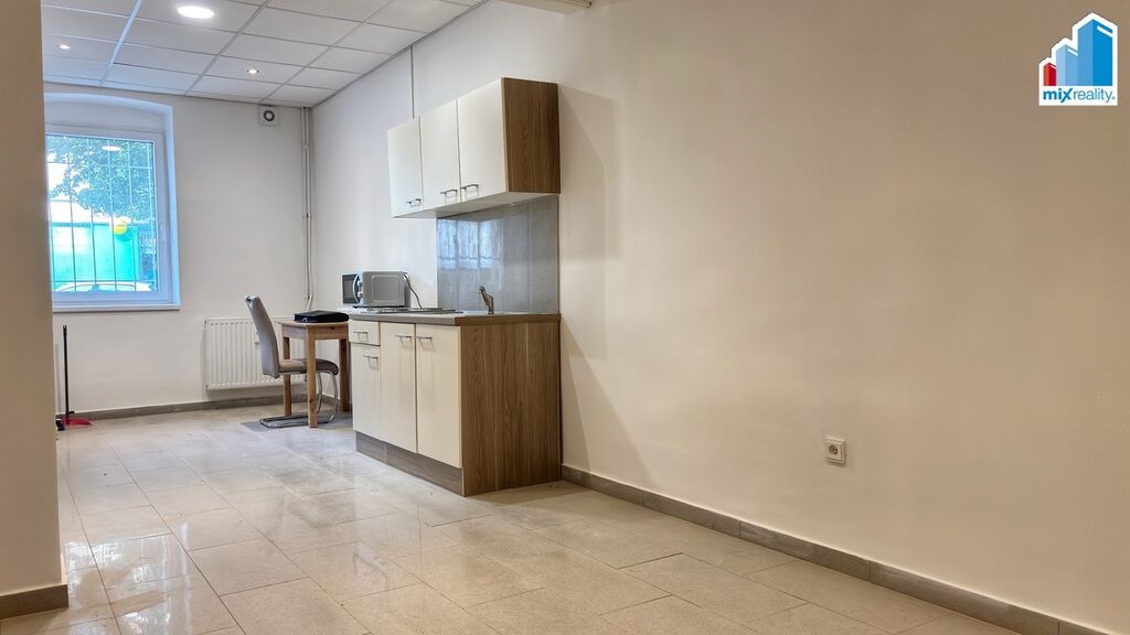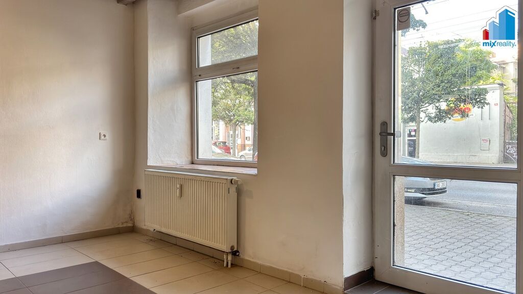 Druhý prostor o ploše cca 26,6 m² má vstup z ulice i ze společné chodby a nabízí také výkladce do ulice. Součástí je samostatné WC s umyvadlem.