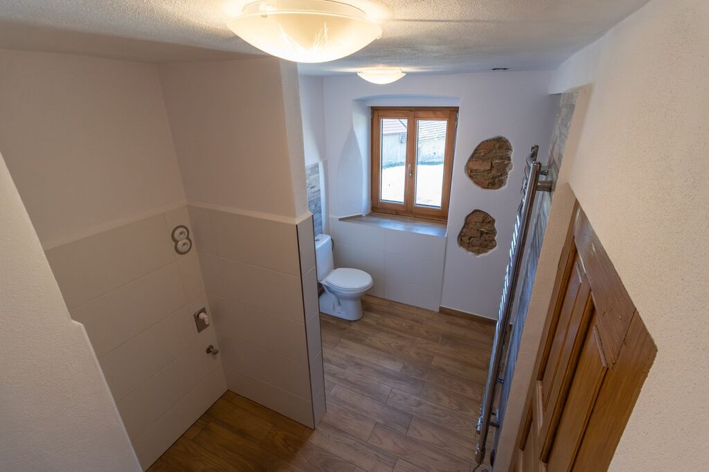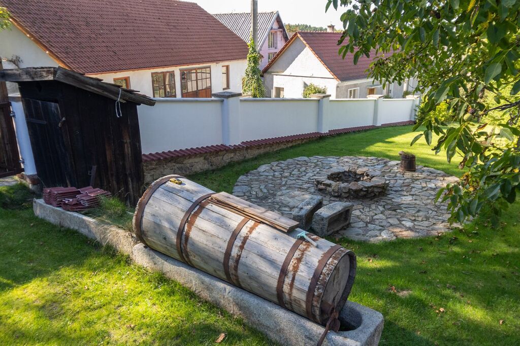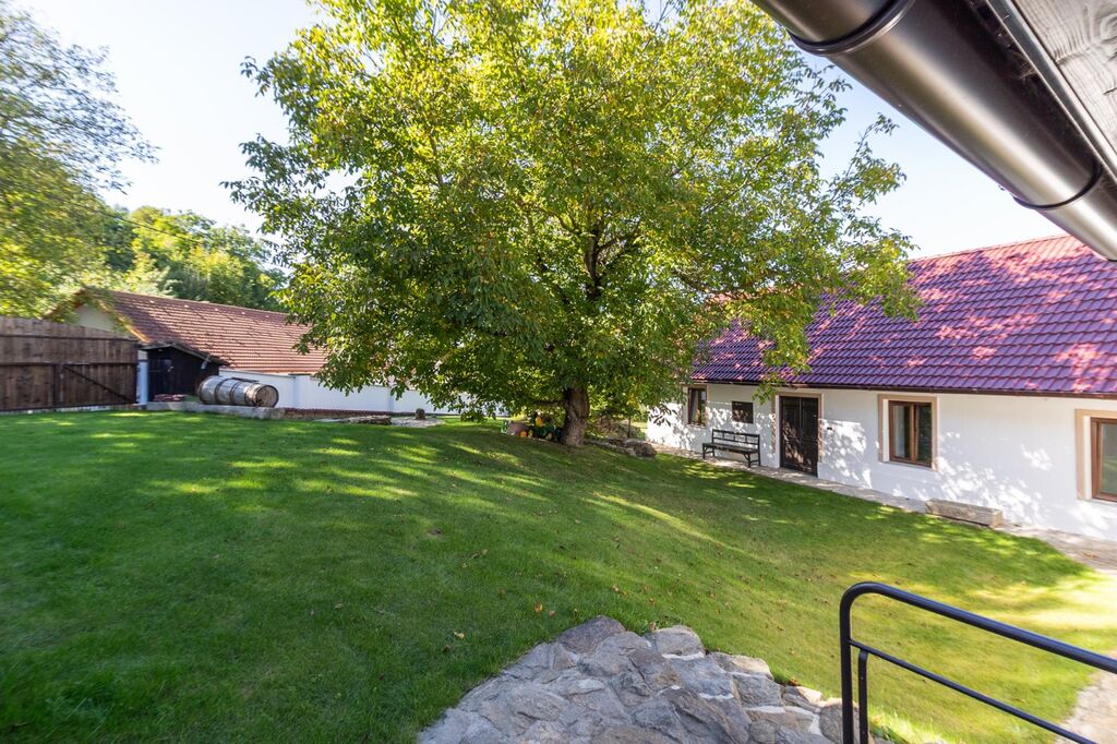 Dispoziční řešení: 4+1 o zast. ploše domu cca 180 m2, s celkovou obytnou pl. cca 100m2, o celkové ploše pozemku 1.155m2. Vnitřní dispozice: vstupní předsíň s chodbou, kuchyně s funkční pecí, el. sporákem s vestavěnými spotřebiči v nové kuchyňské lince, prostorný obývací pokoj + další tři pokoje; koupelna se sprchovým koutem, topným žebříkem, WC. Na dům navazují dva technické prostory s komínem, které lze propojit. Součástí nemovitosti je velmi prostorná stodola (140 m2) a zemní sklípek (10m2). Pozemek je obestavěn zdí v kombinaci osázenými stromky, které zajišťují naprosté soukromí nemovitosti se sluncem po celý den.