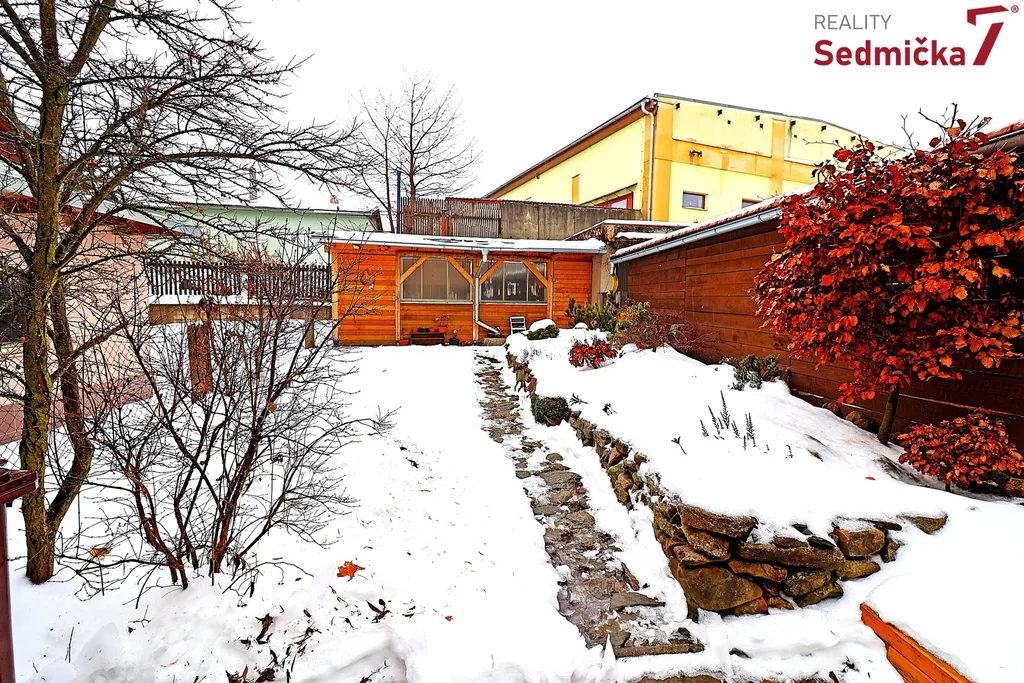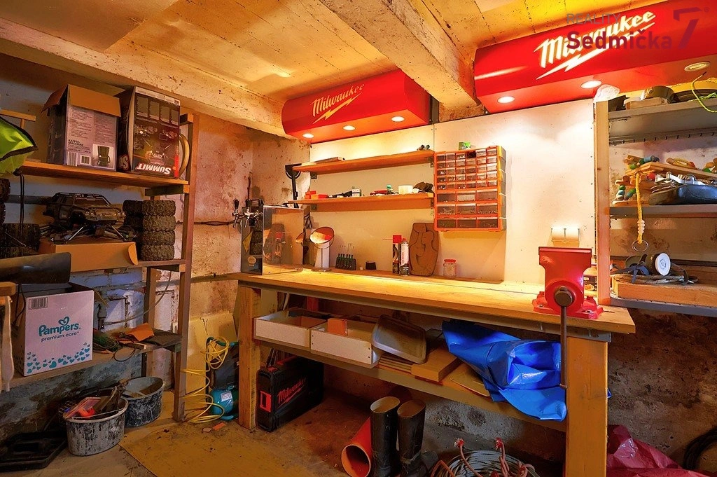 K bytu patří sklep, 1/3 společného sklepa, zahrada s dřevníkem, 2 parkovací místa, pergola s elektřinou, vodou, odpadem a kamny, majitel může navíc využívat 2 horní podesty na schodišti.