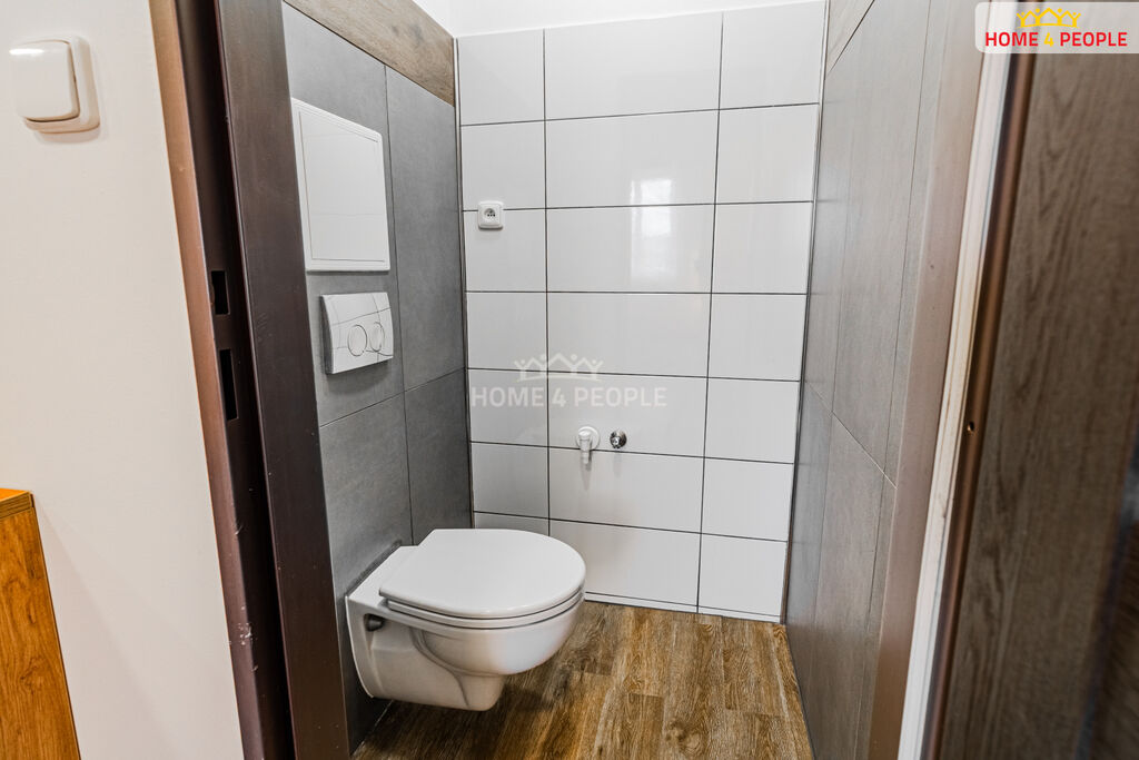 Koupelna s prostorným sprchovým koutem a samostatnou toaletou
