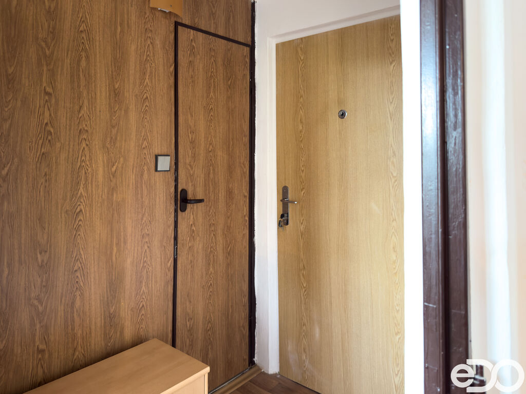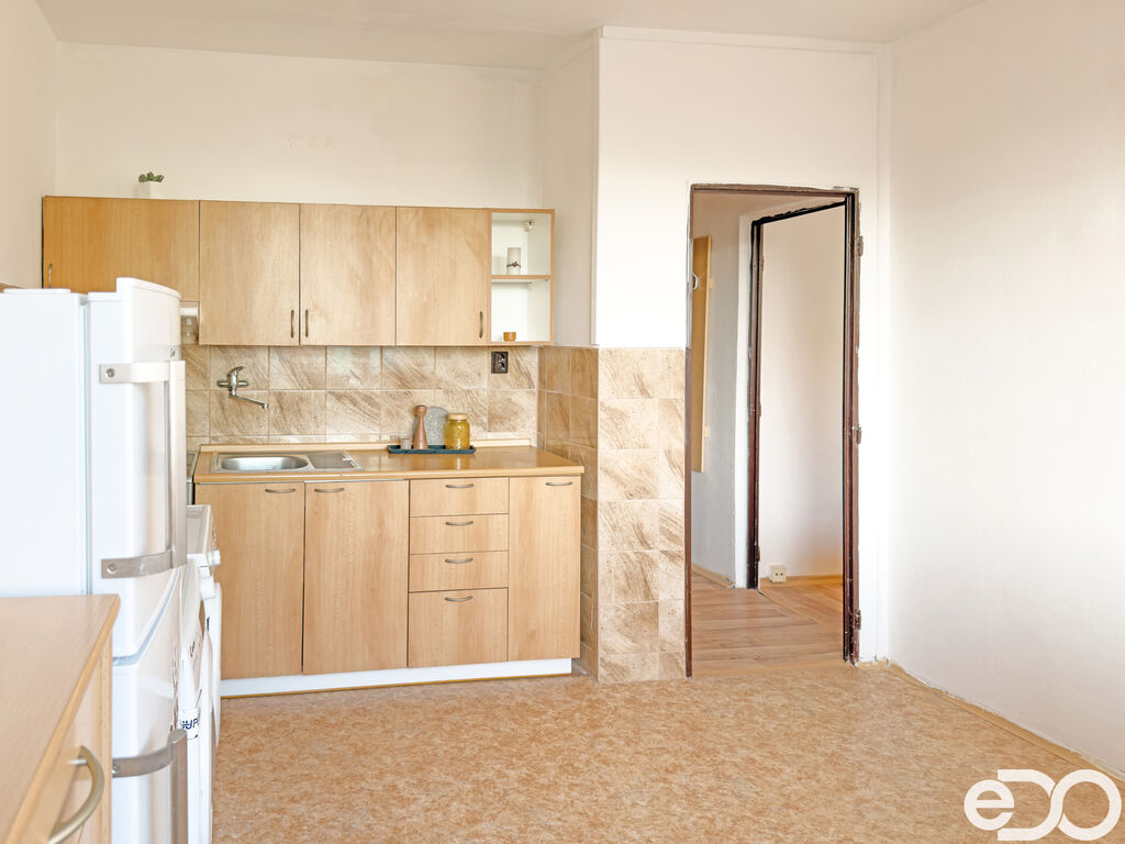 Realitní kancelář eDO Reality Vám exkluzivně nabízí prodej bytu 1+1 o výměře 35,7 m2 + sklep 2 m2. Byt má skvělou dispozici, velkou kuchyni (lze užívat i jako obývací pokoj s kuchyňským koutem) a druhý prostorný pokoj. K bytu se využívá lodžie v mezipatře. Byt je udržovaný, vhodný k nastěhování. Původní umakartové jádro bylo upraveno obkladem.