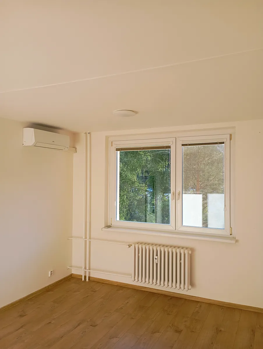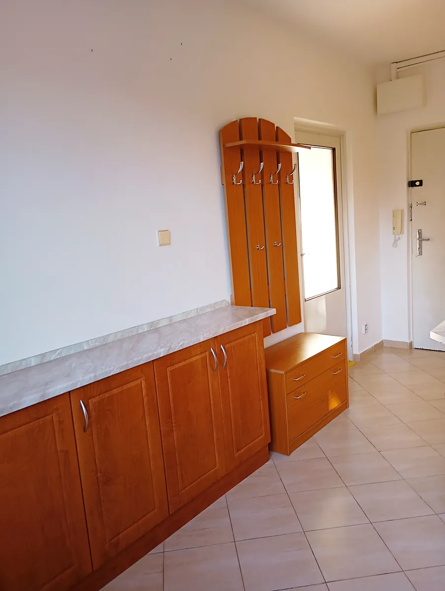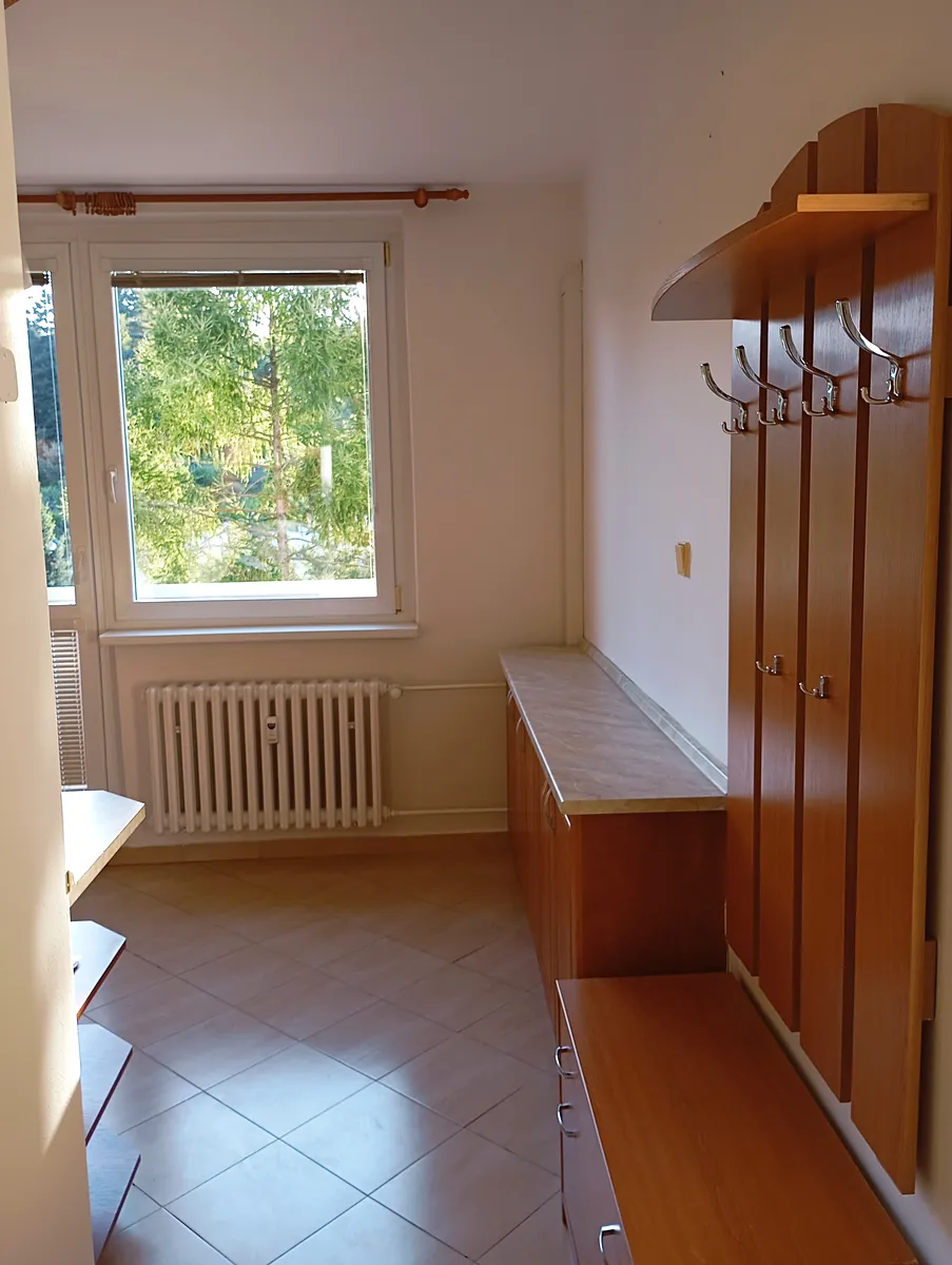 Byt má užitnou plochu 34 m² a je vybaven balkónem, který umožňuje příjemné posezení na čerstvém vzduchu. K dispozici je také sklep, což poskytuje dodatečný prostor pro uložení věcí. Velkou výhodou je dostupnost dopravy - u bytu se nachází jak zastávka MHD, tak autobusová zastávka s dobrou dostupností do centra města. Byt je také vybaven klimatizací, což zajišťuje komfort během letních měsíců.