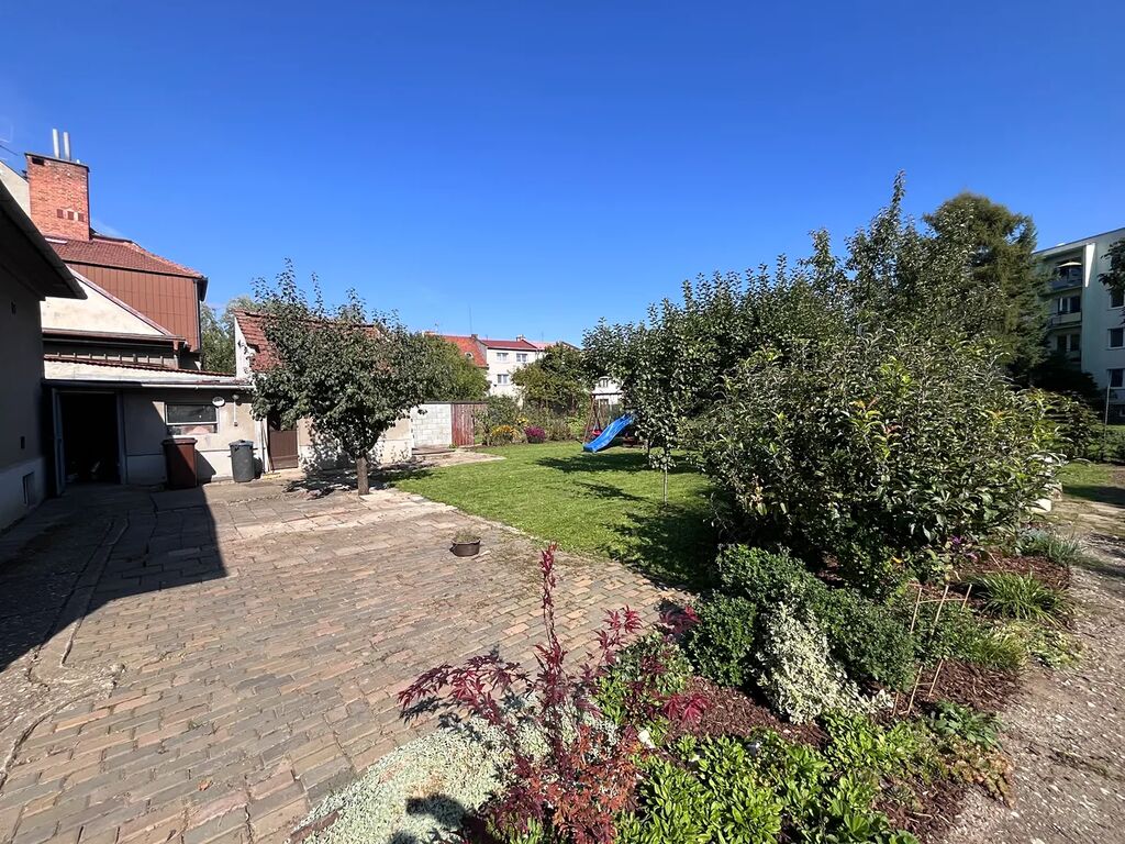 Koncový řadový cihlový dům o současné dispozici 3+1 se dvorem, garáží, zahradním domkem a zahradou, na klidné boční ulici Josefa Hory na začátku městské části Prostějova - Vrahovice.