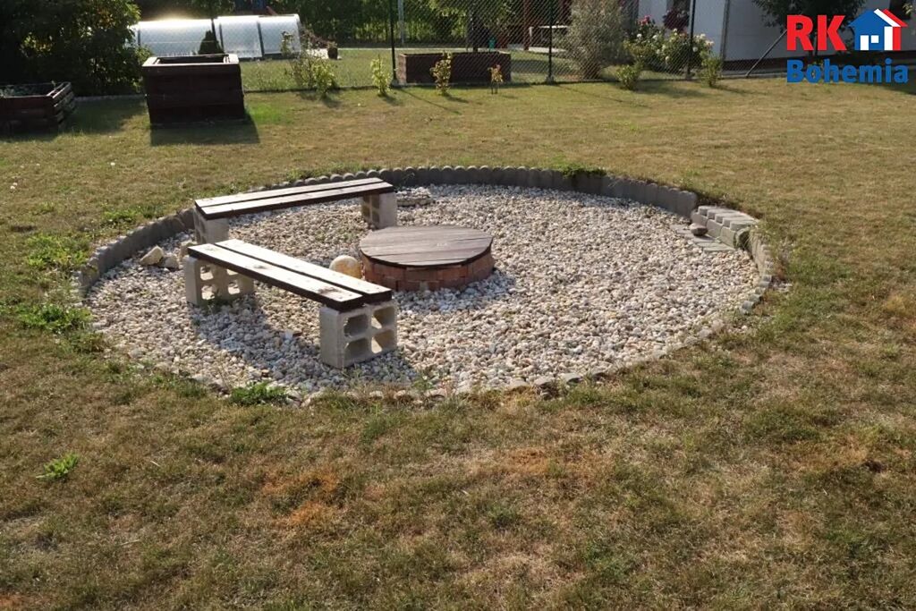 Zahrada má dostatek plochy pro posezení u ohniště, kůlnu, tech.místnost na nářadí, trampolínu a další vyžití.