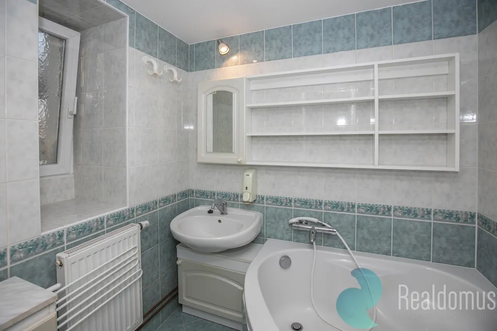 Velkou předností je světlá chodba s okny, která do bytu přivádí dostatek denního světla. Koupelna je vybavena rohovou vanou, toaleta je samostatná a k dispozici je také praktická komora na pračku. Vytápění zajišťuje plynový kotel, umístěný v další komoře. Velké úložné prostory.