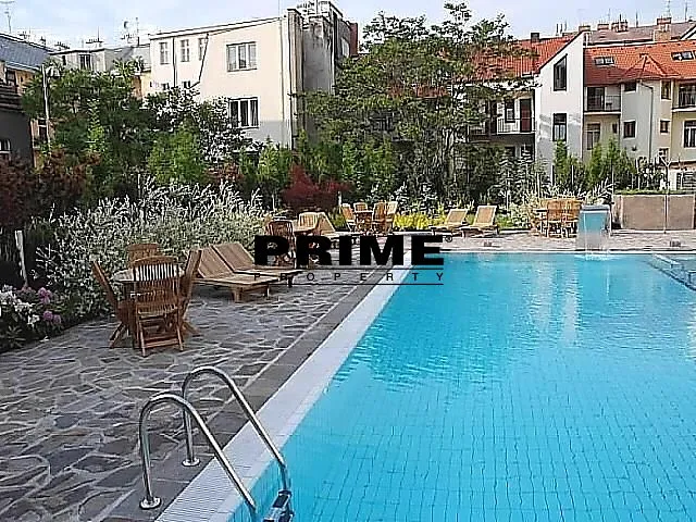 Na podlaze jsou parkety a dlažba. K dispozici je klimatizace, pračka, TV, satelitní přípojka a videotelefon. K dispozici je nájemcům také zahrada ve vnitrobloku s vyhřívaným bazénem. Možnost pronájmu parkovacího stání v podzemních garážích objektu za cenu 5.000 Kč + 21% DPH/stání za měsíc.