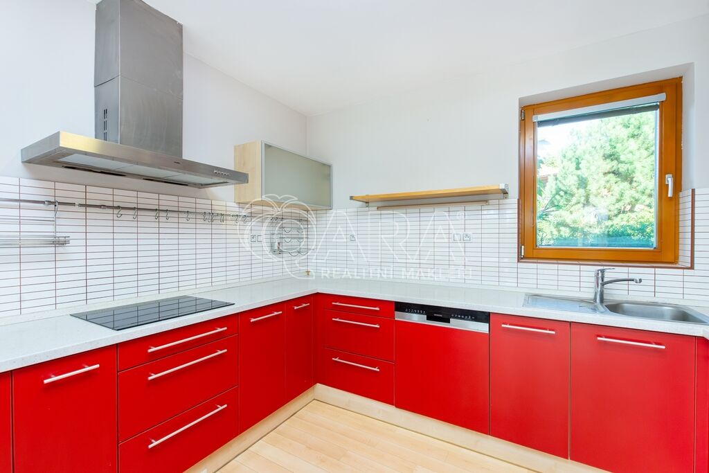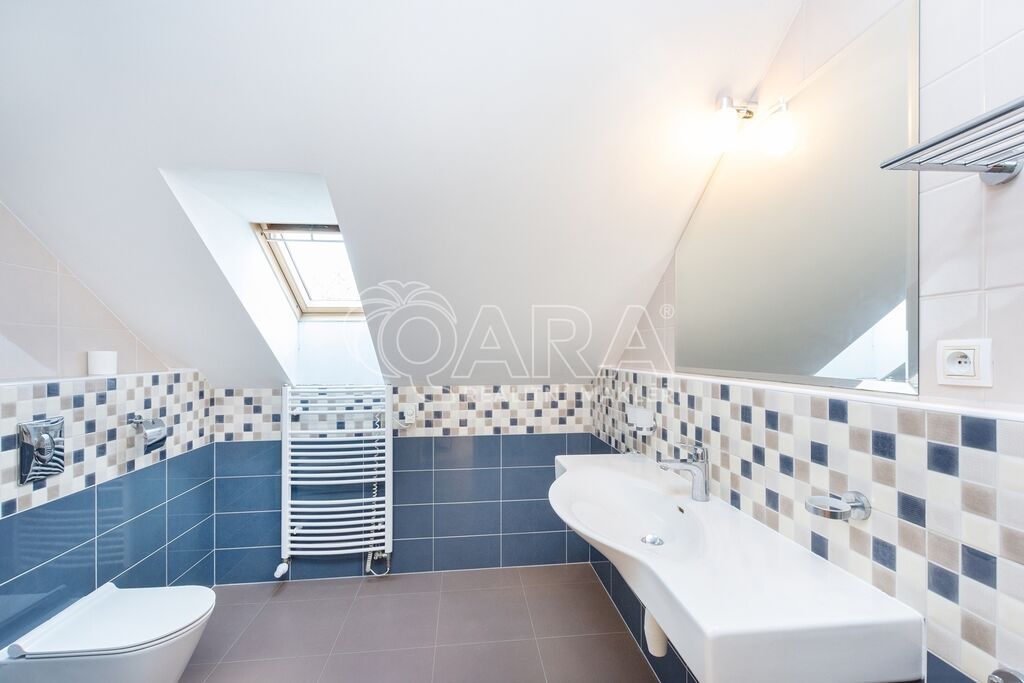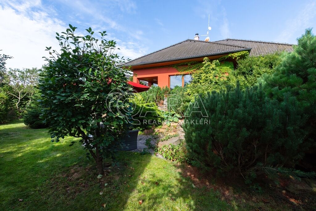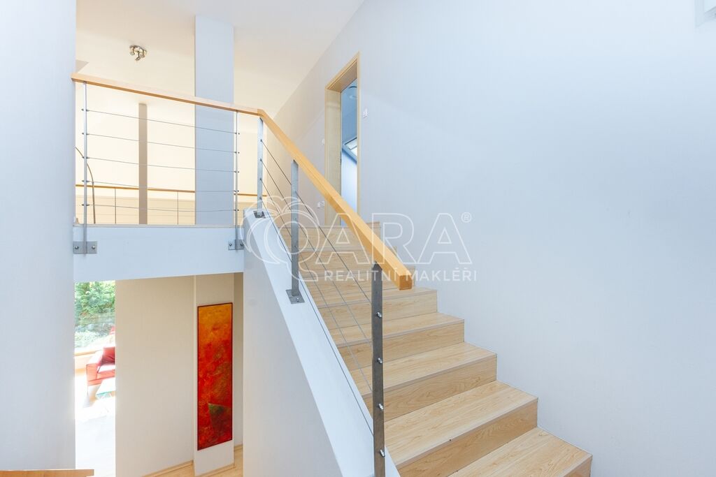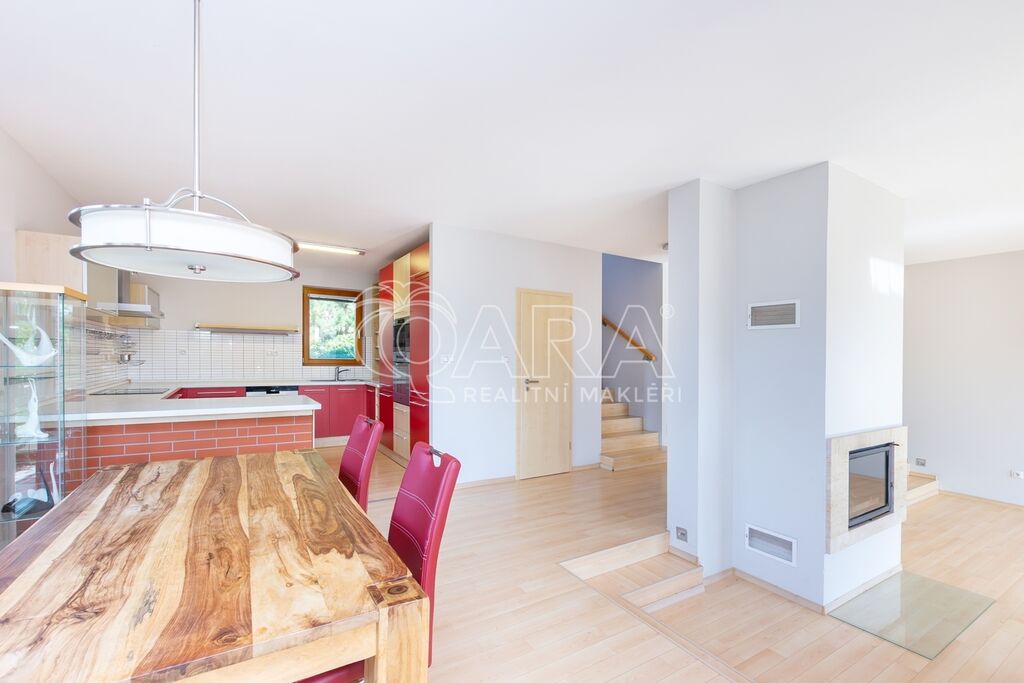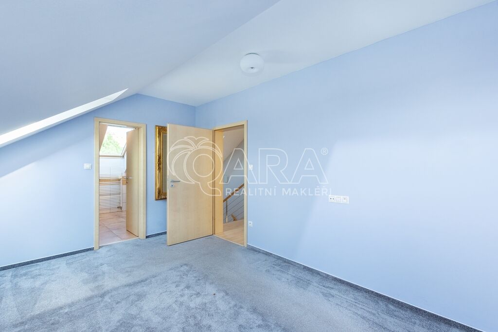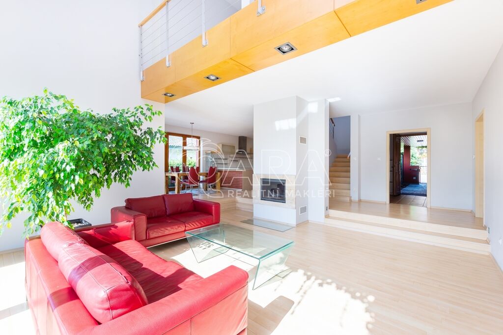 Dům byl navržen architektem tak, aby poskytoval maximální komfort a velkorysý prostor pro společné chvíle rodiny. Prostorné přízemí nabízí otevřený obývací pokoj s krbem, jídelnu a pracovnu s přímým výhledem do zahrady – ideální místo pro setkávání a odpočinek. Společný prostor je rozšířen o otevřenou galerii v horním patře, využitelnou jako další pracovna či herna. V patře najde každý člen rodiny svůj vlastní klidný prostor pro odpočinek či tvůrčí činnost. Hlavní ložnice typu en suite je propojena s koupelnou a šatnou, čímž vytváří dokonalé soukromí a komfort.