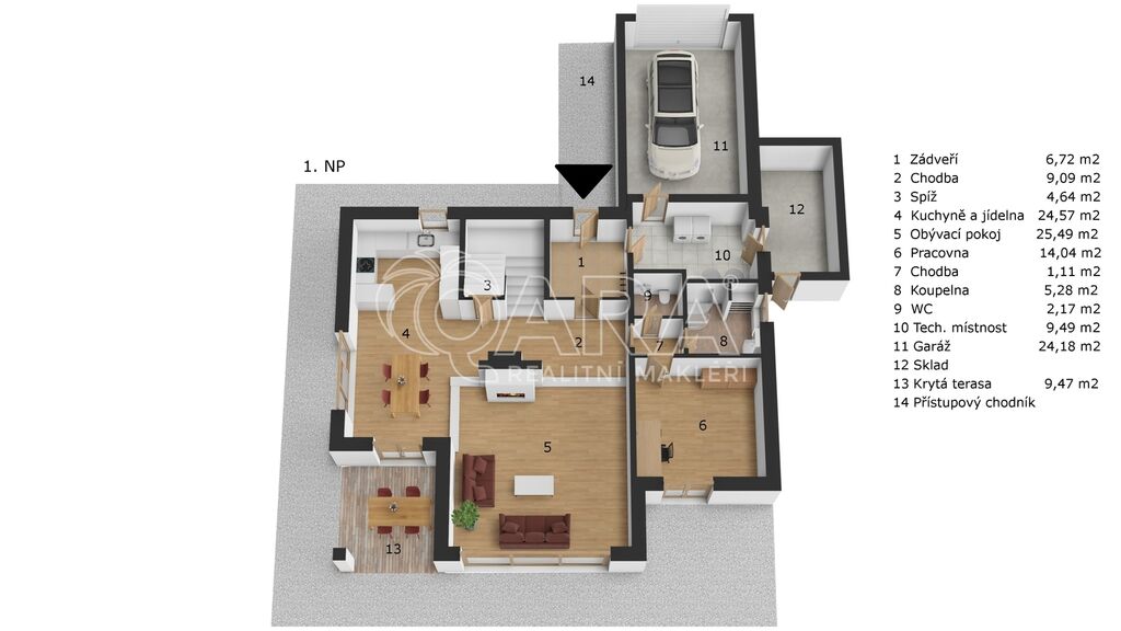 Krytá terasa 9,5 m2