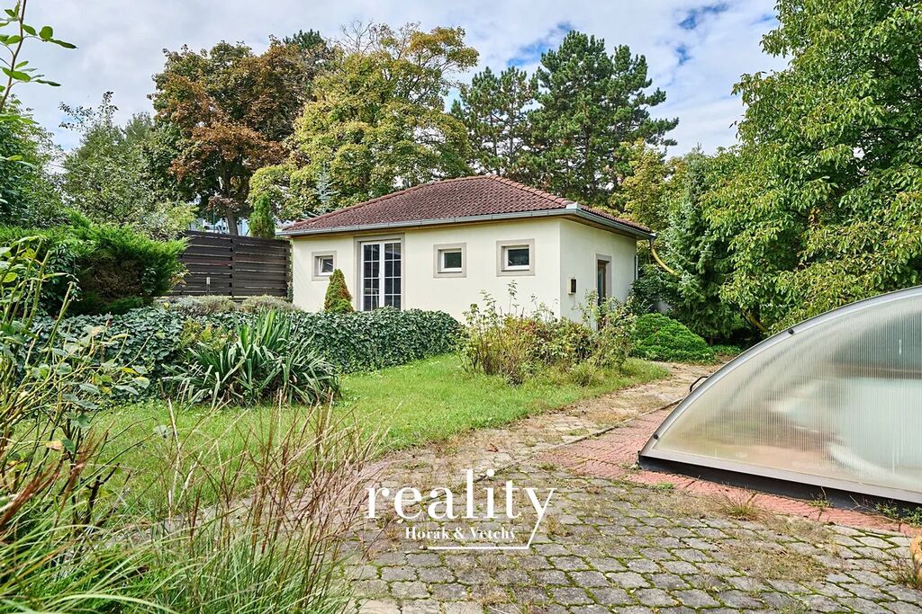 Na zahradě se nachází zastřešený bazén (zde je nutná rekonstrukce) a větší zahradní domek, který byl používán jako ateliér, můžete v něm ubytovat hosty nebo si zde vybudovat saunu nebo posilovnu.