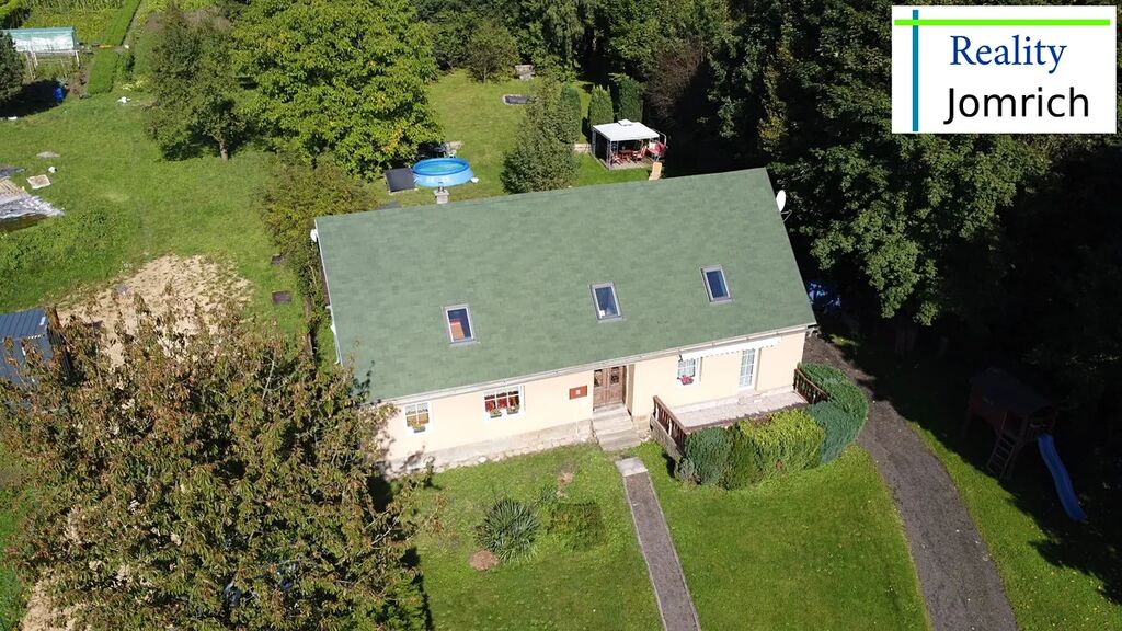 Rodinný dům má zastavěnou plochu cca 110 m2 + dílna s garáží cca 29 m2 + terasa cca 16 m2, jeho modernizace byla realizována v roce 2020 nákladem zhruba 700.000 Kč. V přízemí se nachází obývací pokoj s terasou, kuchyň s jídelnou, koupelna s WC, v podkroví jsou 2 velké pokoje a nad nimi je půda. Dům má zateplenou fasádu a je odkanalizován do vyvážecí jímky s přepadem, připojen na vodovodní řád, rozvod elektřiny a jeho vytápění zajišťuje ústřední kotel na tuhá paliva v kombinaci s elektrokotlem. RD je částečně podsklepen a ihned k nastěhování. Průměrné měsíční náklady spojené s užíváním domu jsou ve výši 6.000 Kč.