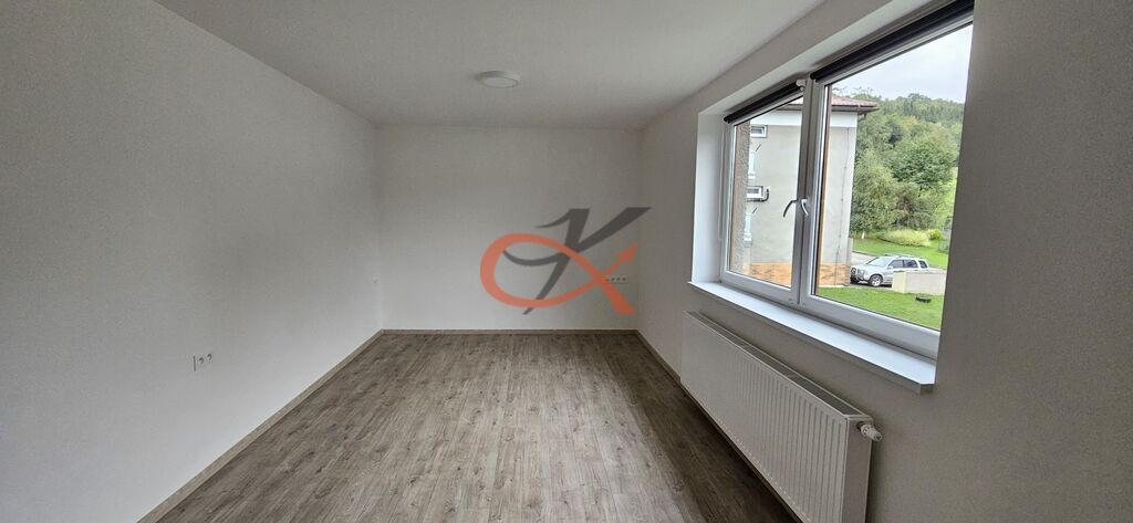 Dispozice: byt ve 2.p domu, vstup do předsíně (s prostornou vestavěnou skříní), ze které je vstup do koupelny s rohovou vanou, samostatné WC, vstup do kuchyně s novými spotřebiči (trouba, varná deska, myčka, zabudovaná mikrovlnná trouba) a vstupem do prostorné komory s oknem. Dále je vstup do prostorného obývacího pokoje, který si zařídí nájemníci dle svých preferencí. Samostatné vstupy do 2 pokojů. Byt je prostorný, vzdušný, dobře dispozičně řešený. Okolo domu možnost zahrádky a bezproblémové parkování. K dispozici prostorný sklep.