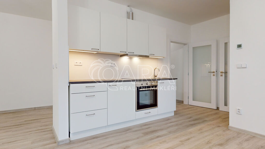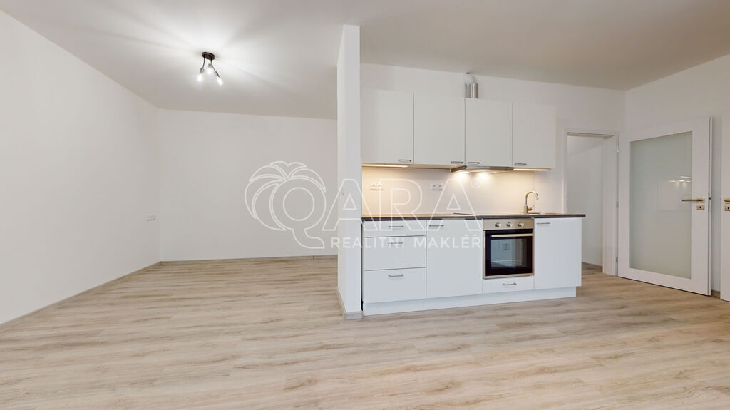 Tento světlý byt o podlahové ploše 39,5 m² (plus terasa cca 36 m²) se nachází ve prvním podlaží novostavby moderního cihlového nízkoenergetického domu s bezbariérovým vstupem. Nemovitost je vybavena novou kuchyňskou linkou s vestavěnými spotřebiči (trouba, indukční deska, lednice, odsavač par).