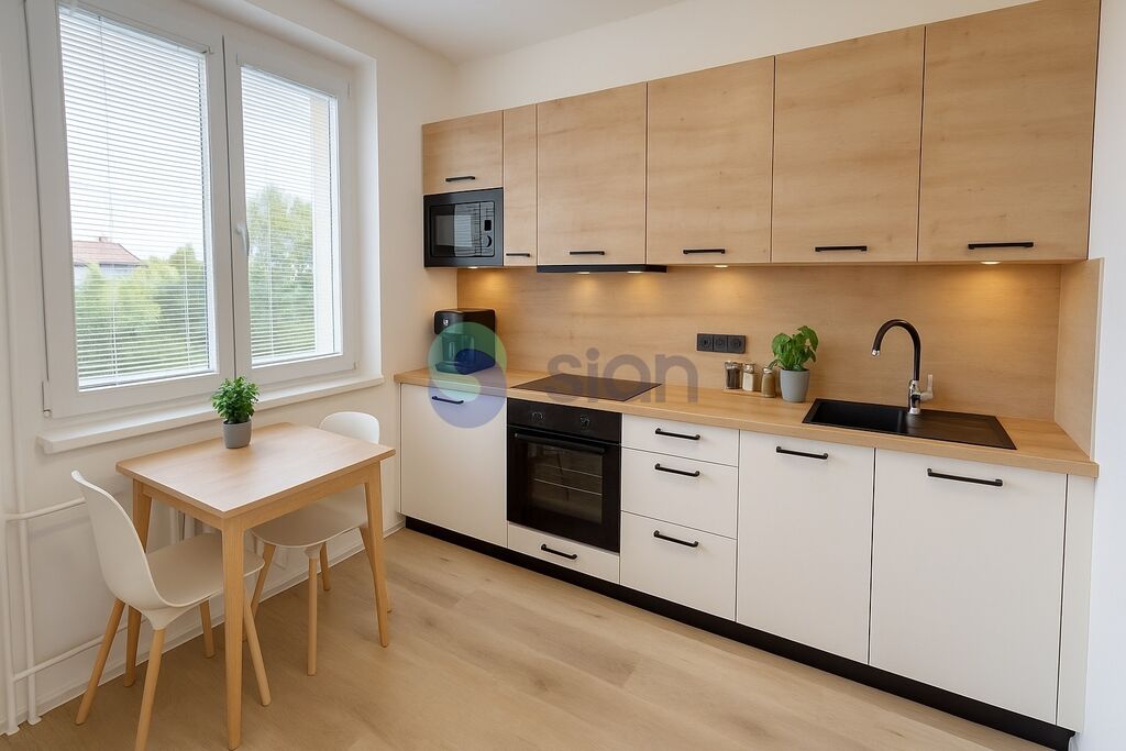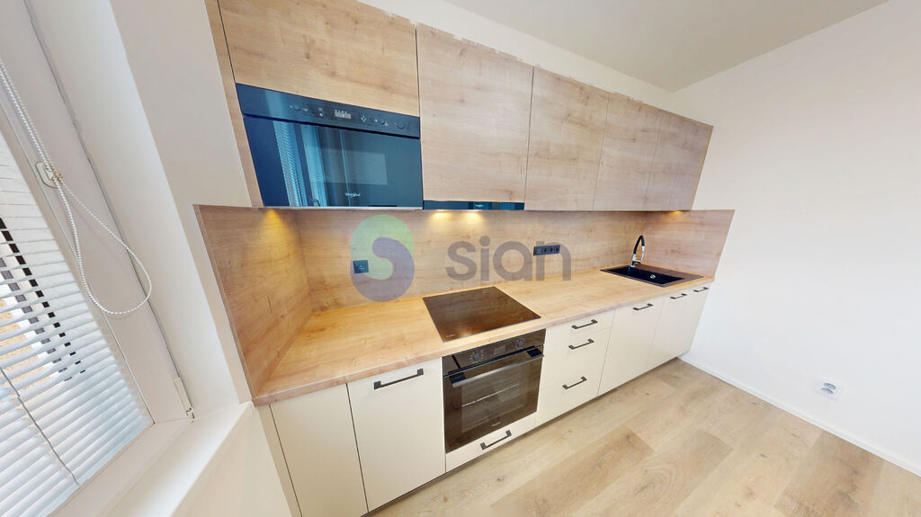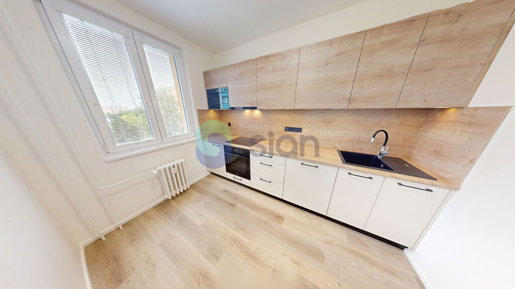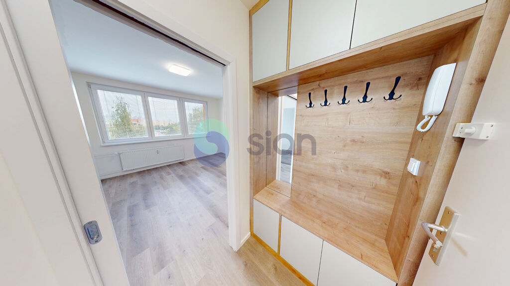 V bytě byla právě dokončena kompletní rekonstrukce. Původní umakartové jádro nahradilo zděné. V rámci kuchyně naleznete linku zhotovenou na míru se zabudovanou indukční varnou deskou a mikrovlnkou, granitovým dřezem, digestoří a dostatkem manipulačního i úložného prostoru. Koupelna disponuje sprchovým koutem a umyvadlem s umyvadlovou skříňkou, toaleta je závěsná. Velkou výhodou je komora s přípojkou na pračku a s úložným prostorem. Při vstupu do bytu je již důmyslně vyřešený šatní systém. Uvedené vybavení nábytek a doplňky jsou pouze vizualizací jak může Váš domov vypadat a jak využít skvělý potenciál prostoru.