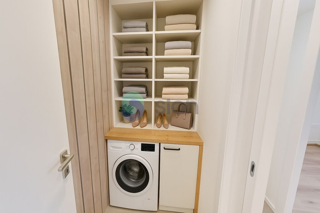 Dispozice bytu: po vstupu do bytu se ocitnete v menší předsíni, odkud vedou posuvné dveře do obývacího pokoje. Odtud můžete vstoupit do neprůchozí ložnice, do kuchyně nebo přes komoru do koupelny. Dispozice je promyšlená s ohledem jak na pohodlí, tak na praktičnost.