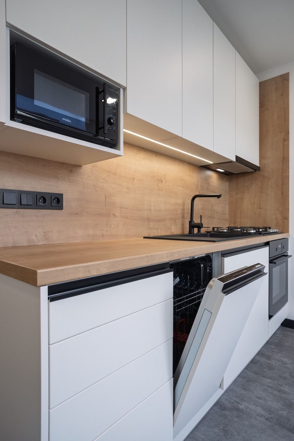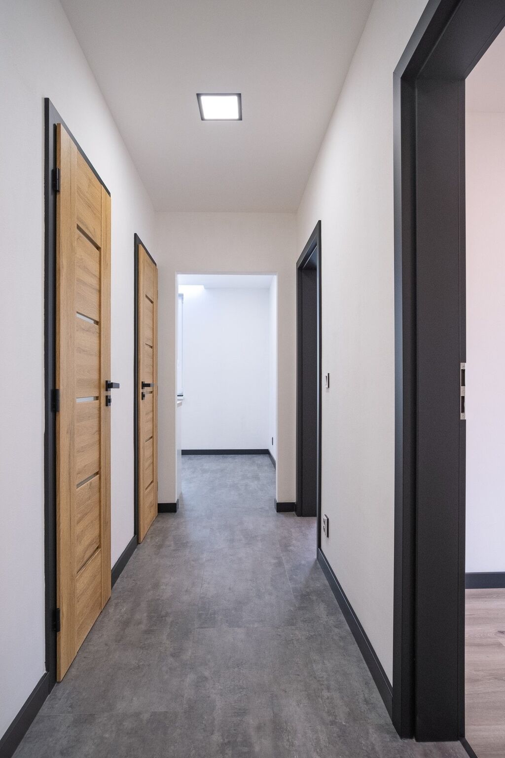V bytě byly položeny nové vinylové podlahy a doplněny o detaily, které zvyšují komfort užívání – např. množství zásuvek, dřevěné dveře s prosklením, promyšlené řešení koupelny a bezpečnostní vstupní dveře. Nová okna ve všech místnostech a balkonové dveře jsou vybaveny žaluziemi. Kuchyňská linka na míru obsahuje vestavěné spotřebiče: horkovzdušnou troubu, plynovou varnou desku, mikrovlnnou troubu a myčku na nádobí. V případě zájmu je možné vybavení rozšířit o lednici a pračku.