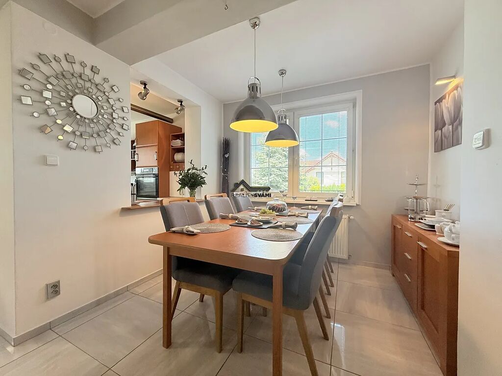 V Nemovitosti může zůstat kompletní vybavení na míru, zabezpečovací systém, nebo například vestavěné domácí kino. Není to ovšem podmínkou a nemá to vliv na prodejní cenu.