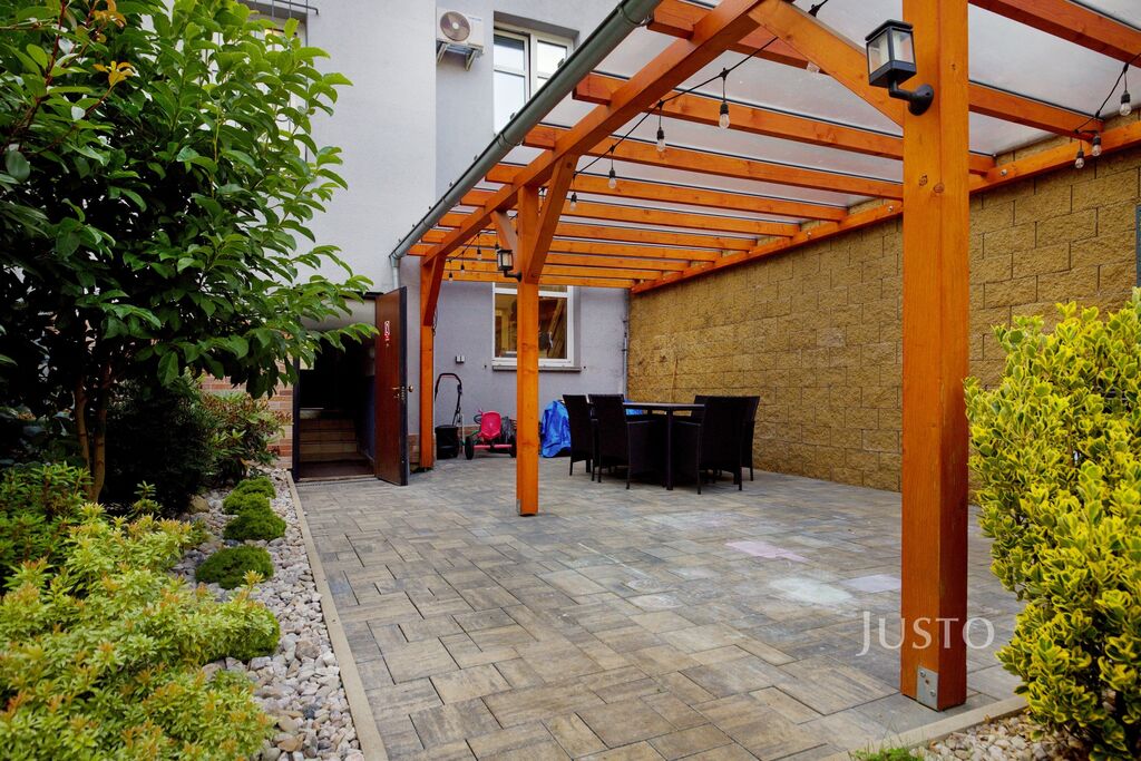 Dům je cihlový, má tři nadzemní podlaží a je z jedné třetiny podsklepený. Stav objektu je velmi dobrý, prošel kompletní rekonstrukcí včetně interiérů jednotlivých bytů. Dispozice domu nabízí pohodlný přístup z ulice, praktickou garáž a na zadní straně příjemnou zahradu o rozloze 187 m² s posezením a dostatkem prostoru pro relaxaci či rodinné aktivity.