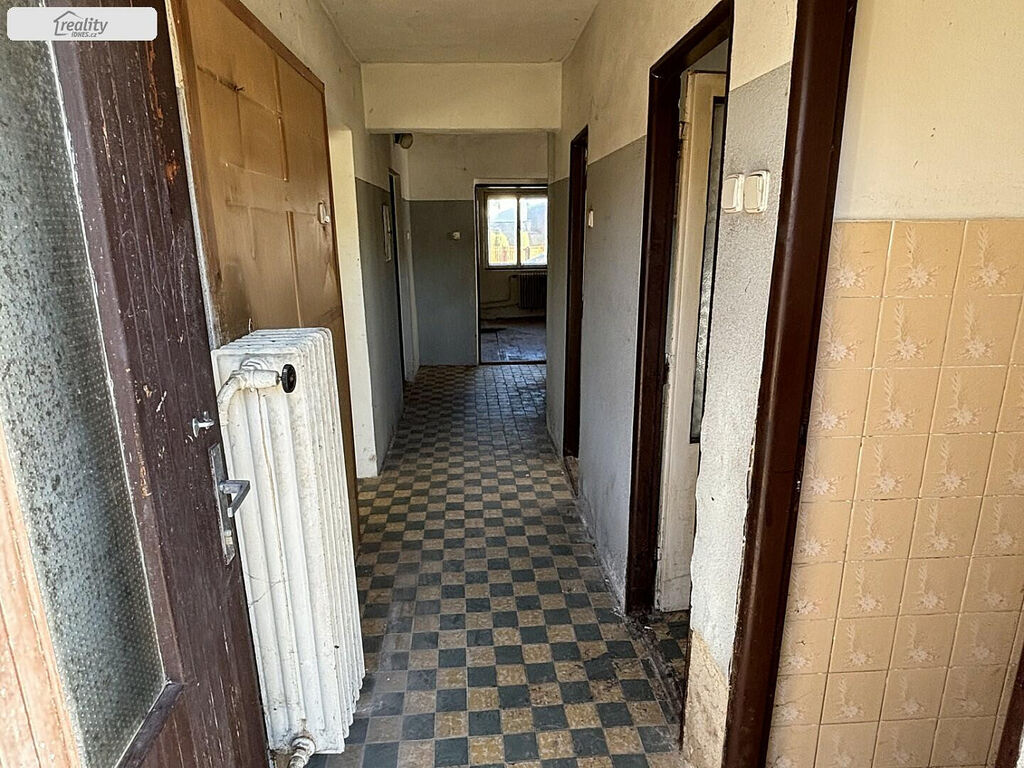 Při vstupu do domu prostorná předsíň ze které jsou samostatné vstupy do koupelny, WC, komory, druhé kuchyně, hlavní kuchyně, která je průchozí do dalších třech místností. Dále pak vstup z chodby na schodiště do prvního patra. Po schodech v 1. patře prostorná chodba vhodná na šatnu, pracovnu či zimní sušárnu prádla, vstup do půdních prostor a vchod do další obytné místnosti, kde se nachází také vstup na velkou užitnou terasu. Díky zbudované samostatné druhé kuchyně v přízemí byl dům v minulosti využívám jako dvougenerační. V současném stavu je celá nemovitost určena k celkové rekonstrukci a modernizaci dle Vašich představ. Dům je odizolovaný a nejeví známky jakékoli vlhkosti ani ve sklepních prostorách.