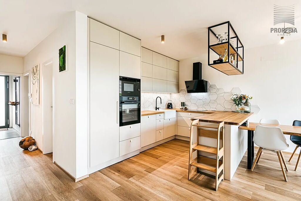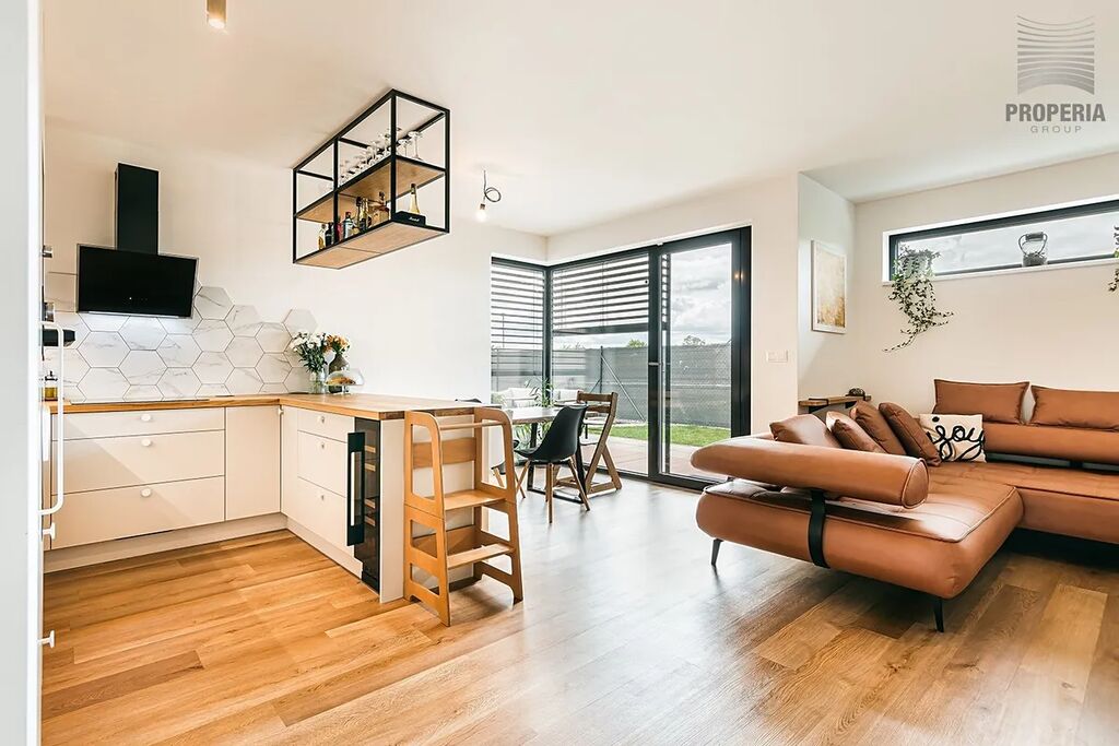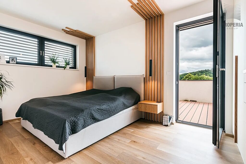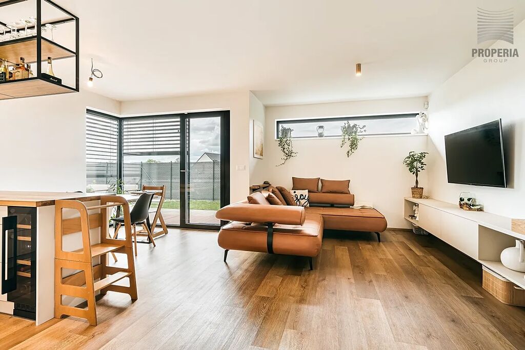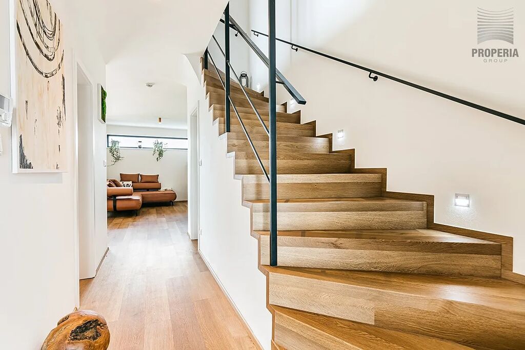 Nevšední novostavbu z r. 2023 s dispozicí 5+kk o CP 194m2 v této obci zřetelně definuje čistý stavební styl a prémiová kvalita. Je kompletně vybavený vestavěným nábytkem.