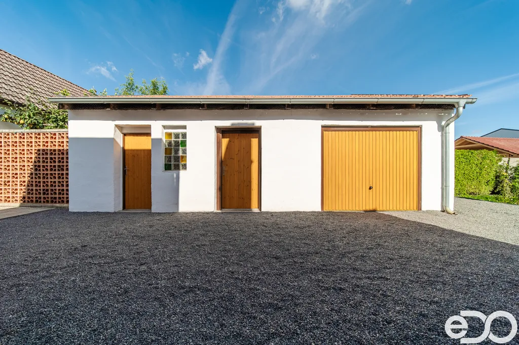 Vedlejší stavba (42 m²): garáž pro osobní vůz, dílna a sklad, zkrátka praktický doplněk domu, který zajišťuje prostor pro parkování, údržbu i uskladnění.