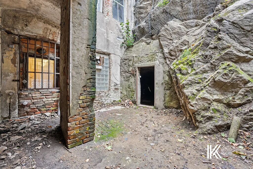 Za domem se rozprostírá klidný vnitroblok, do kterého přímo zasahuje majestátní skalní útvar. Ten vytváří nejen působivou kulisu, ale i jedinečnou atmosféru místa. Skála je součástí pozemku a v jedné její části se otevírá přístupný přírodní prostor, připomínající malou jeskyni. Ten může být využit například jako originální vinný sklípek v kombinaci s venkovním posezením.