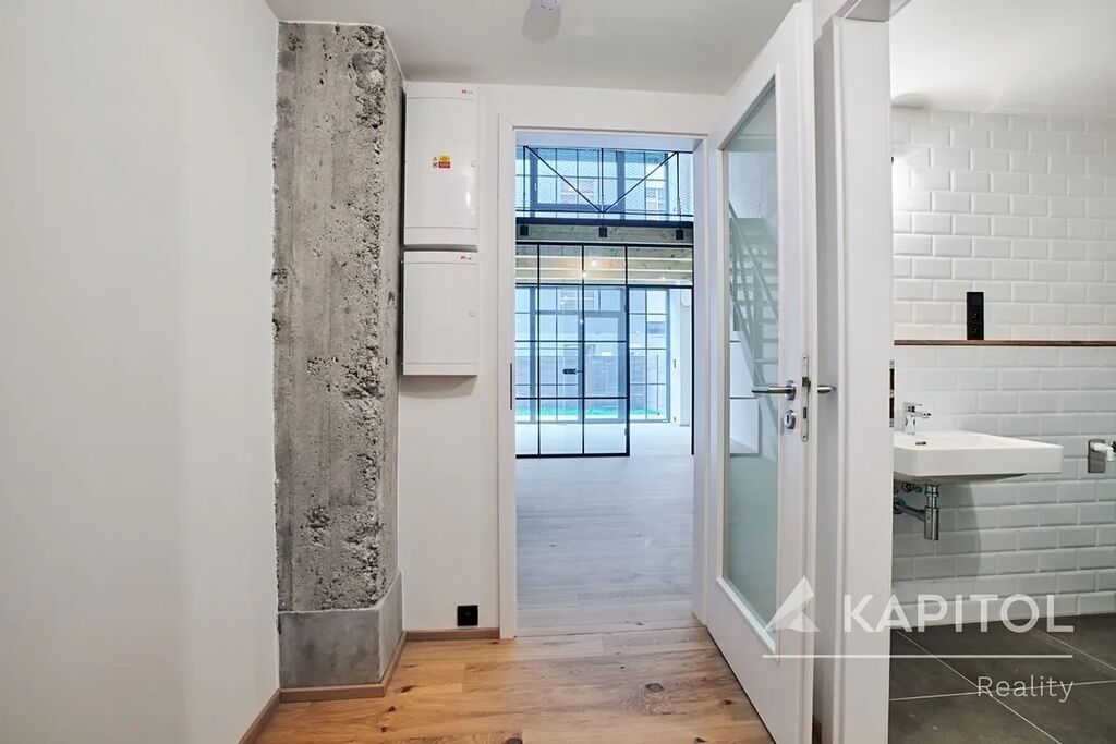 Nabízíme k pronájmu nový loftový byt v industriálním stylu původní tovární budovy s dispozicí 3+kk o rozloze 83,60 m² a předzahrádkou 12,06 m² orientovaný na východní stranu. Součástí pronájmu je sklep o velikosti 1,70m². Dominantou bytu jsou vysoké stropy až do celkové výšky 6m a velkoformátová okna přes celou stěnu, která zaručí vzdušnost a světlost prostoru. Byt se nachází ve 1. nadzemním podlaží pětipodlažního bezbariérového domu s dvěma výtahy. Budova má dva vchody, jeden je přímo z ulice Kolbenova a druhý je ze zadní strany budovy vedle vjezdu do garáží.
