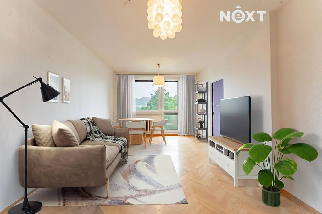 Dispozice bytu poskytuje dostatek prostoru i pro početnější rodinu. Součástí je kuchyň na míru s vestavěnými spotřebiči, světlý obývací pokoj, dvě ložnice, komora, nová koupelna se sprchovým koutem a samostatná toaleta.
