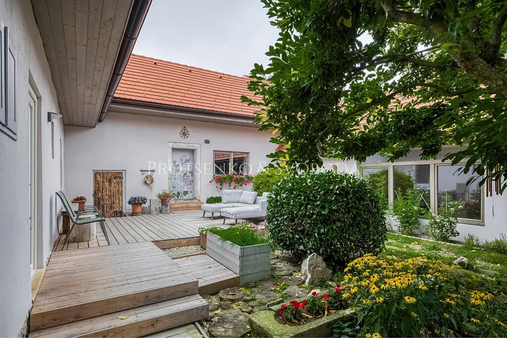 Druhý dům, dnes využívaný k podnikání, nabízí kuchyň, koupelnu, dva pokoje a podkrovní místnost. Uvnitř se skrývá i garáž, do které se dá dostat i průchozí chodbou z kuchyně u schodiště. Další samostatná garáž stojí na pozemku.