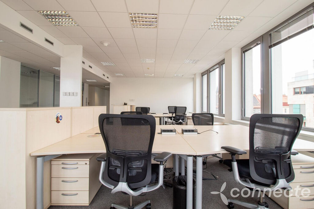 - k dispozici kuchyňka, serverovna a sdílené zasedací místnosti (rezervační systém)