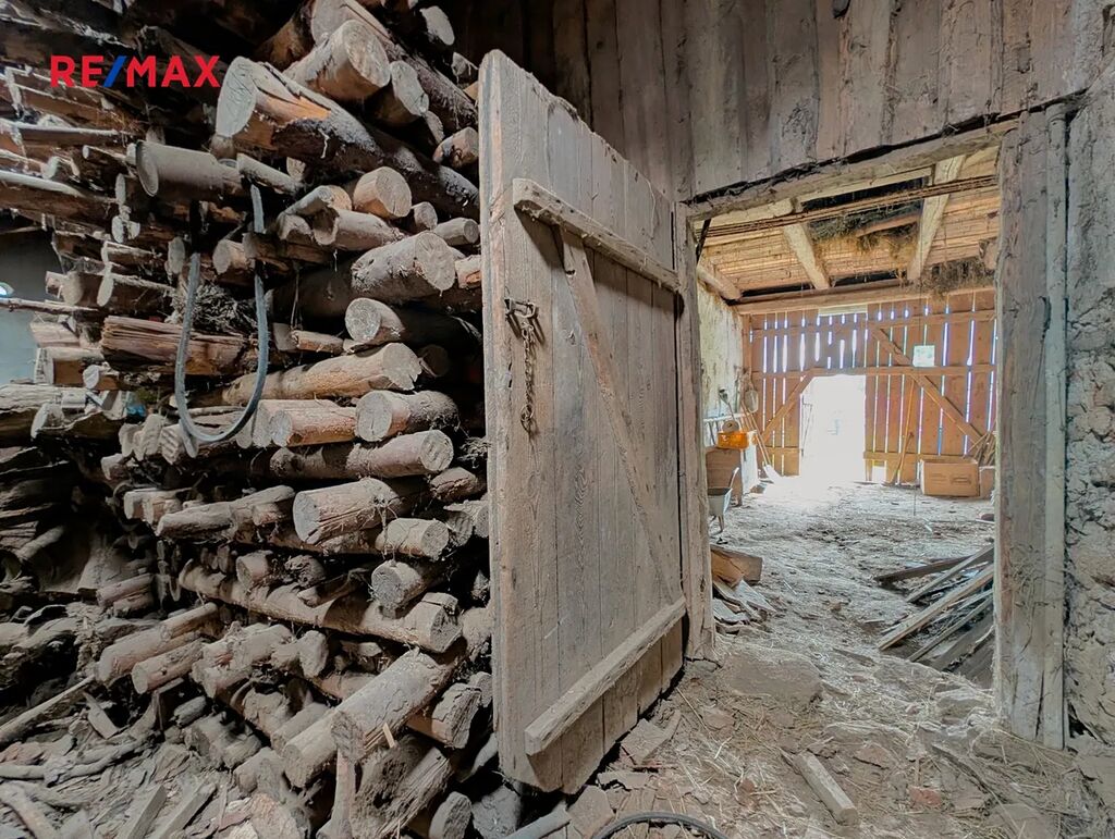 Součástí pozemku (589 m²) je stodola, využívaná jako dílna nebo sklad, a v ní oddělený zděný chlév.