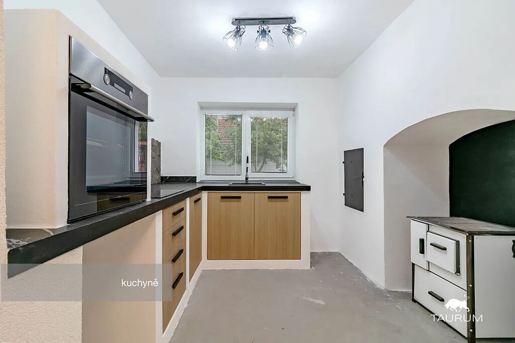 V kuchyni je nová kuchyňská linka s troubou a místem na myčku.