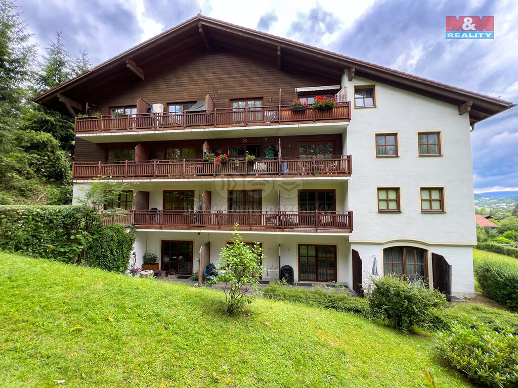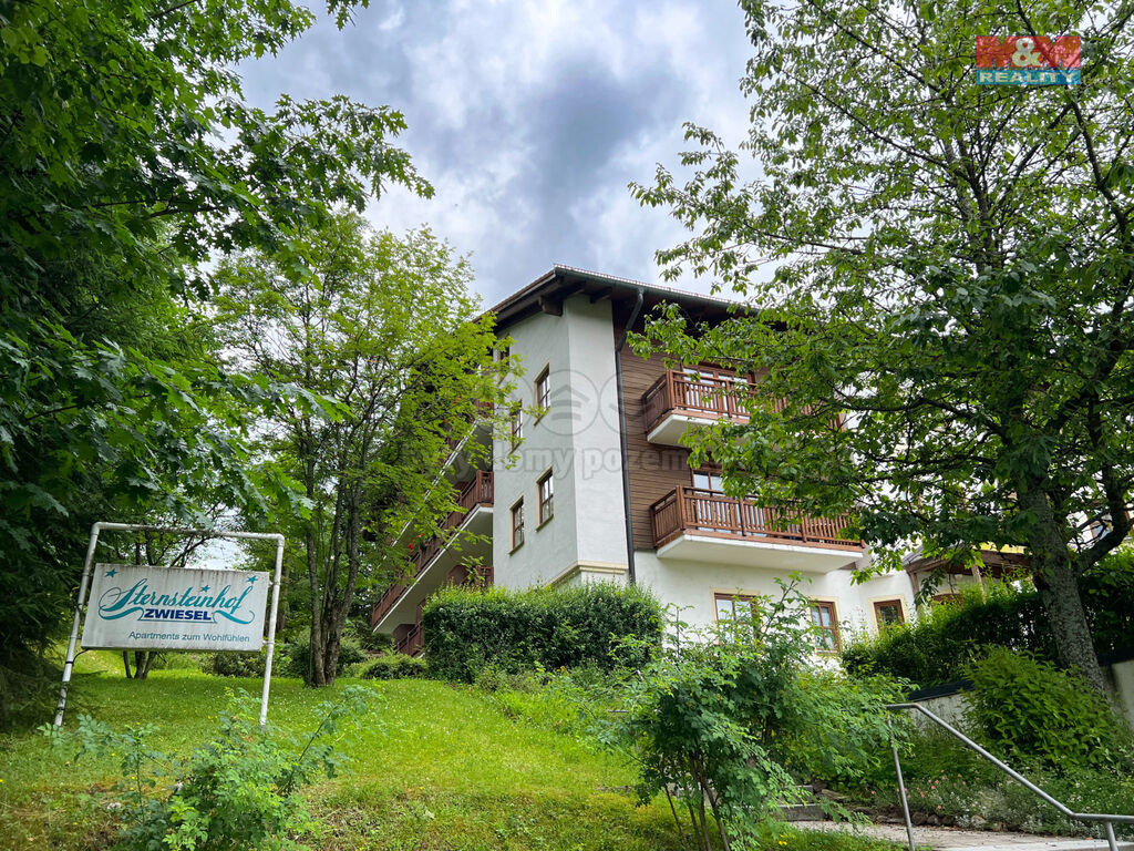 Nabízíme ke koupi krásný, světlý byt 2+1 o velikosti 49 m² s krytým garážovým stáním nedaleko českých hranic v oblíbeném německém městečku Zwiesel v malebné části Bavorska. Tento byt se nachází ve 3. podlaží (s výtahem) udržovaného čtyřpatrového cihlového domu obklopeného zelení. Dispozice bytu - dvě místnosti spolu se zařízenou kuchyňkou ve vstupní chodbě, prostorný balkon s krásným výhledem na okolní přírodu. Náklady na byt jsou kolem 130 € (v platbě je voda, topení, výtah, popelnice, elektřina v bytě i společná). Jednou za 3 měsíce se platí 58 € za televizi. Součástí bytu je soukromé parkovací stání v kryté garáži. K bytu náleží sklepní kóje, společná prádelna a kolárna. Byt je ve velmi dobrém stavu a díky své poloze je perfektní volbou jak pro trvalé bydlení, tak i jako rekreační apartmán nebo investice na pronájem. Milovníci zimních sportů ocení blízkost lyžařského areálu Gross Arber. V létě potěší okolní příroda plná turistických tras a cyklostezek.