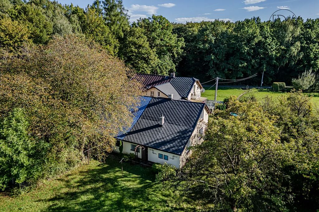 V přízemní části domu se nachází kuchyň, obývací pokoj, koupelna a toaleta. V patře, do kterého se dostaneme otevřeným schodištěm, je umístěna ložnice. Mezipatro slouží momentálně jako klidová zóna s posezením. Dům nabízí mnoho praktických zákoutí a úložných prostor. Je v původním, udržovaném stavu s plastovými okny a dvojskly. Nové rozvody topení, plechové deskové radiátory, vytápění je řešeno plynovým kondenzačním kotlem. Elektroinstalace je provedena v mědi. Připojení na vodovod, rozvody vody v plastu, odpad řešen formou septiku. Byla provedena fasáda, bez aplikace tepelné izolace a zateplovacího systému, střecha je ekoternitová, bezúdržbová, výměna krytiny proběhla v roce 2024. Dům je celopodsklepen.