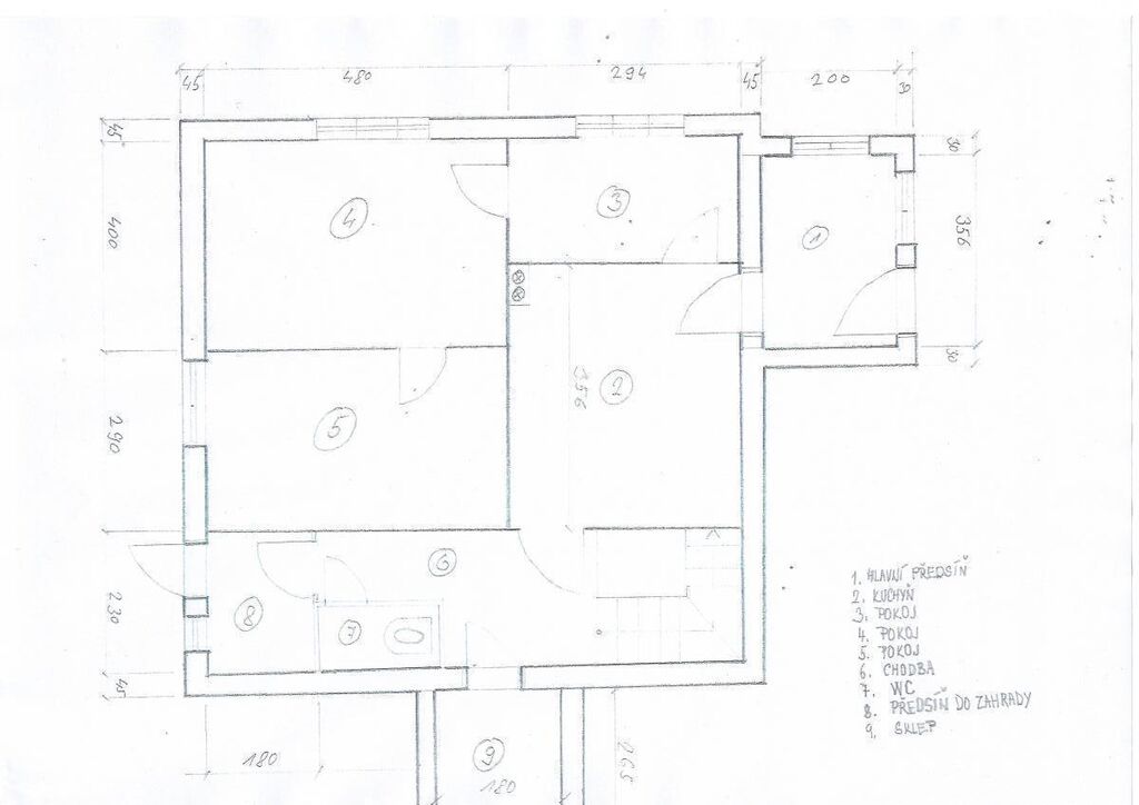 Dispozice domu: 1. NP čtyři místnosti, chodba, sklepní prostor, WC, dvě předsíně (při vstupu do domu a při vstupu na zahradu). 2. NP prostorné půdní podlaží o velikosti cca 100 m, vhodné k vybudování dalších obytných prostor.