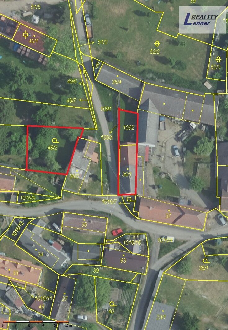 Sítě: elektřina 230V, na hranici pozemku kanalizace, vodu je nutné řešit vlastním vrtem.