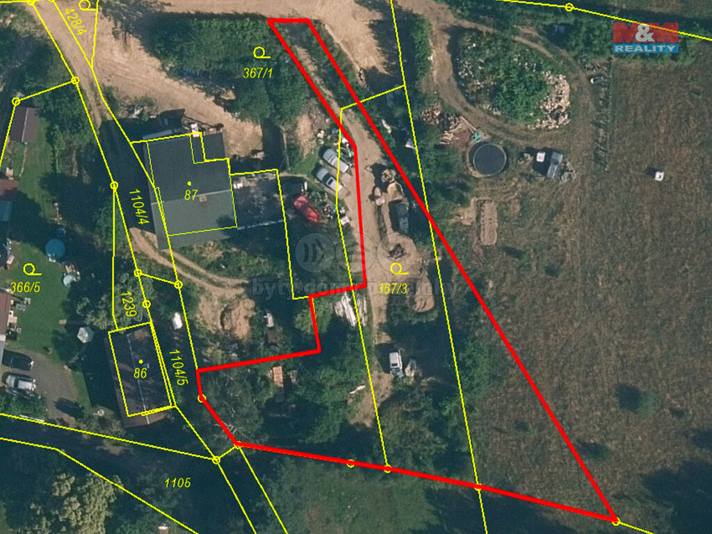 Geometrickým plánem je připraveno oddělení 2 stavebních parcel o plochách cca 1400 a 1870 m2 i pro případné budoucí zhodnocení.
