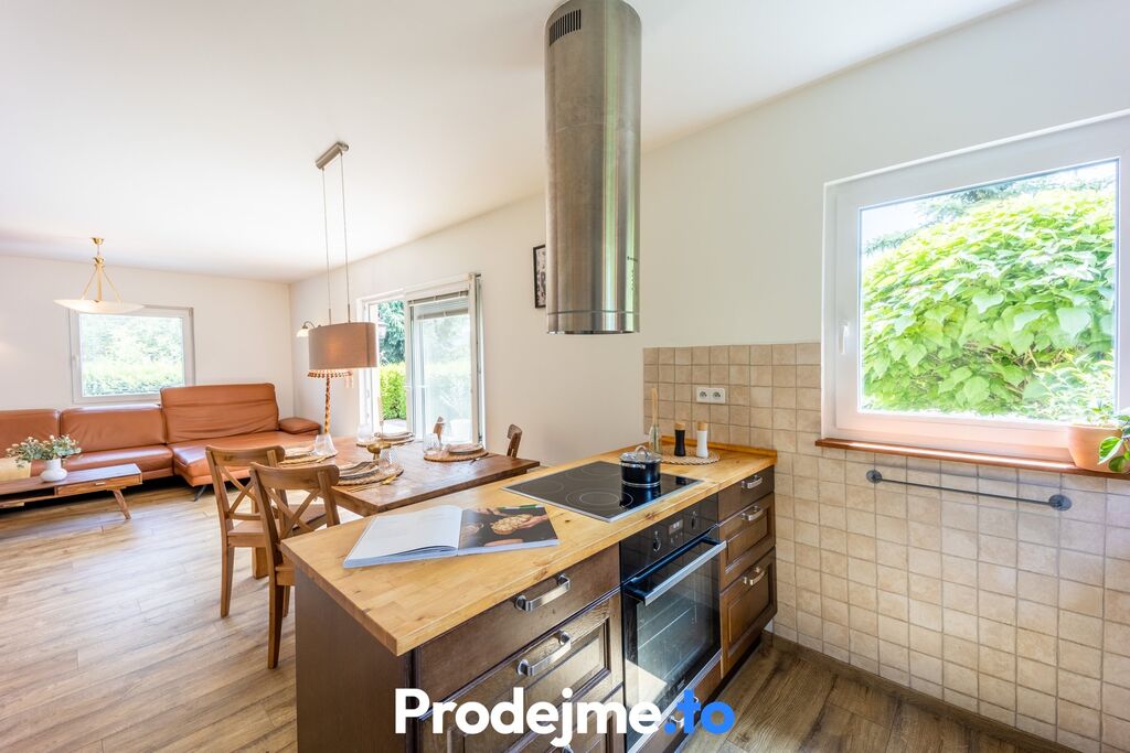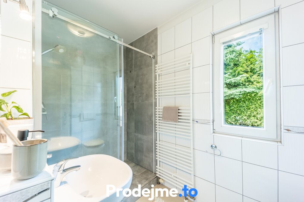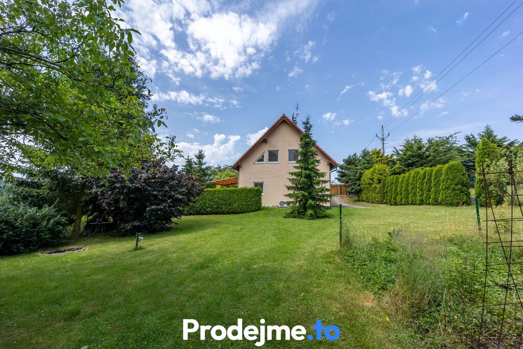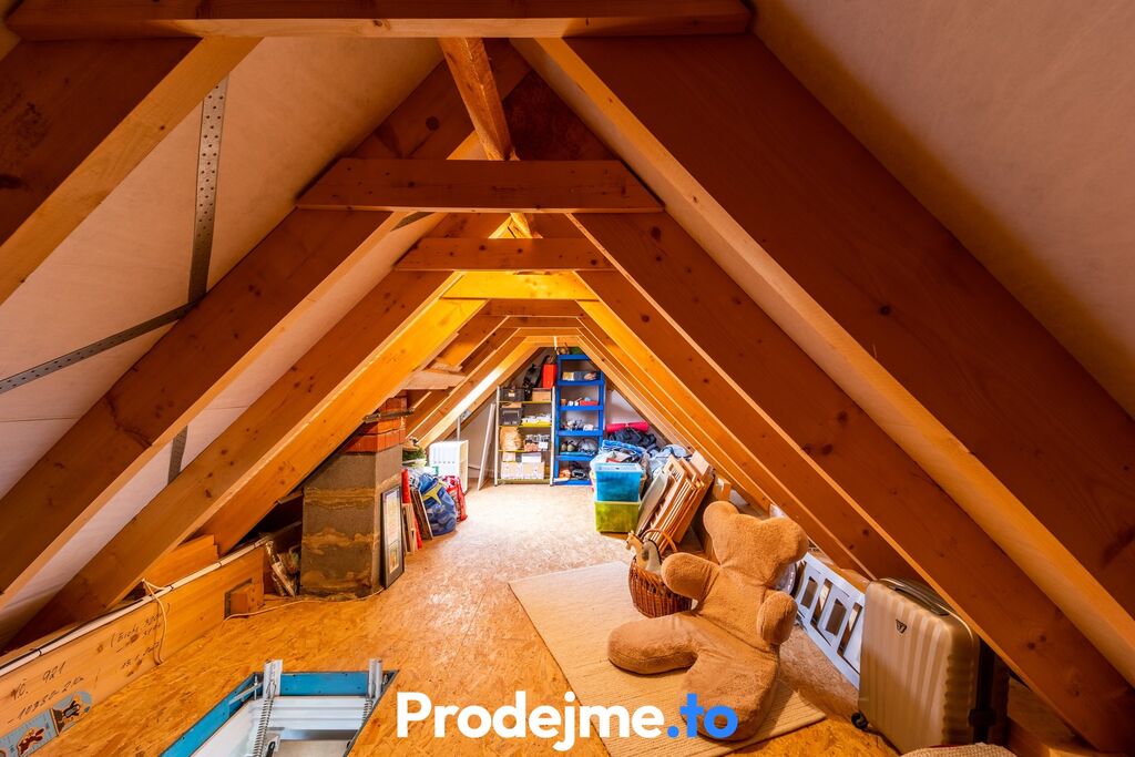 Dům je dvoupodlažní s prostornou půdou. Přízemí patří velkému obývacímu pokoji se stylovými kamny a plně vybaveným kuchyňským koutem. Příjemnou atmosféru a prosvětlenost dodávají místnosti francouzská okna na terasu. Díky zastřešení, orientaci na jihovýchod a nádhernému výhledu do údolí je posezení na terase opravdovým odpočinkem. V přízemí dále najdete praktickou spíž, koupelnu se sprchovým koutem a toaletou, technickou místnost s elektrickým bojlerem, pračkou a sušičkou a také velkou šatnu, kterou lze, díky umístěnému oknu, využít jako další samostatný pokoj.