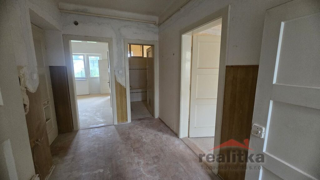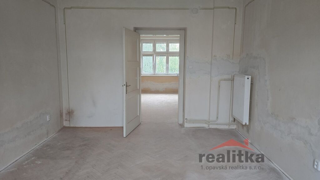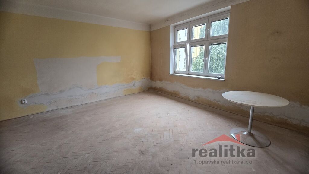 Nabízíme prodej bytu k rekonstrukci 3+1, 75m2 s balkónem a společnou zahradou v Opavě v klidné lokalitě na ul. Bezručovo náměstí. Byt se nachází v 1. patře cihlového domu. Celý dům je v podílovém spoluvlastnictví. V bytě je nový kondenzační, plynový kotel na vytápění a ohřev vody, nová topná tělesa a nová elektřina, v celém bytě jsou plastová okna. Byt je v současné době - kuchyň se vstupem na balkón a do malého pokojíčku. V předsíni je vstup na Wc, velké koupelny, komory, 1. pokoje a ten je průchozí s 2. pokojem. Dispozice bytu lze krásně zcela přebudovat na velký 3+kk s velkou šatnou. Byt je situovaný na JV a JZ stranu. Doporučuji prohlídku těm, kteří chtějí celkovou rekonstrukci dle vlastních představ. K bytu náleží velký sklep, půdní prostor a podíl na udržované zahradě. Zájemci o prohlídku dle domluvy s paní Gratzovou.