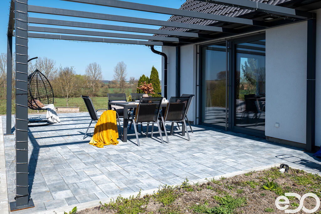 Dům je ideální pro rodinu nebo pár, kteří hledají moderní bydlení se soukromím. Na vlastním pozemku je připravena zpevněná plocha pro parkování dvou vozidel a jedno další před vraty.