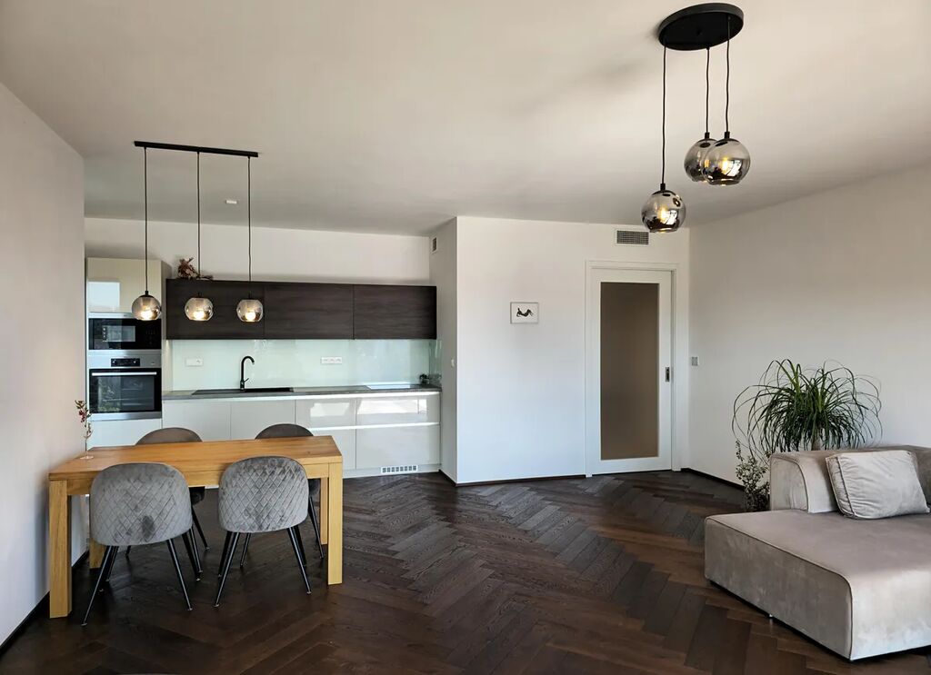 Exkluzivně nabízíme k prodeji nadstandardní byt o dispozici 2+KK s garážovým stáním v novostavbě z roku 2020 - Viladům Děvín. Rezidence byla vyprojektována v moderním designu renomovanou architektonickou kanceláří Masák & Partners. Budova stojí v klidné lokalitě pražského Smíchova, ve vilové čtvrti obklopené zelení. V docházkové vzdálenosti se nachází MŠ, park a autobusová zastávka. Metro Radlická je vzdálené cca 1 km. Doslova pár kroků od domu se nachází vyhlášená restaurace Na Kopci. Jistě oceníte také potraviny Žabka a hned 5 boxů různých zásilkoven. Nedaleko je také sportovní hala, tenisové kurty a plavecký bazén. Budova je opravdovou rezidencí zaručující dostatečné soukromí. Nachází se zde pouze 8 bytů. V suterénu domu je garáž s autovýtahem a skladovými prostory.