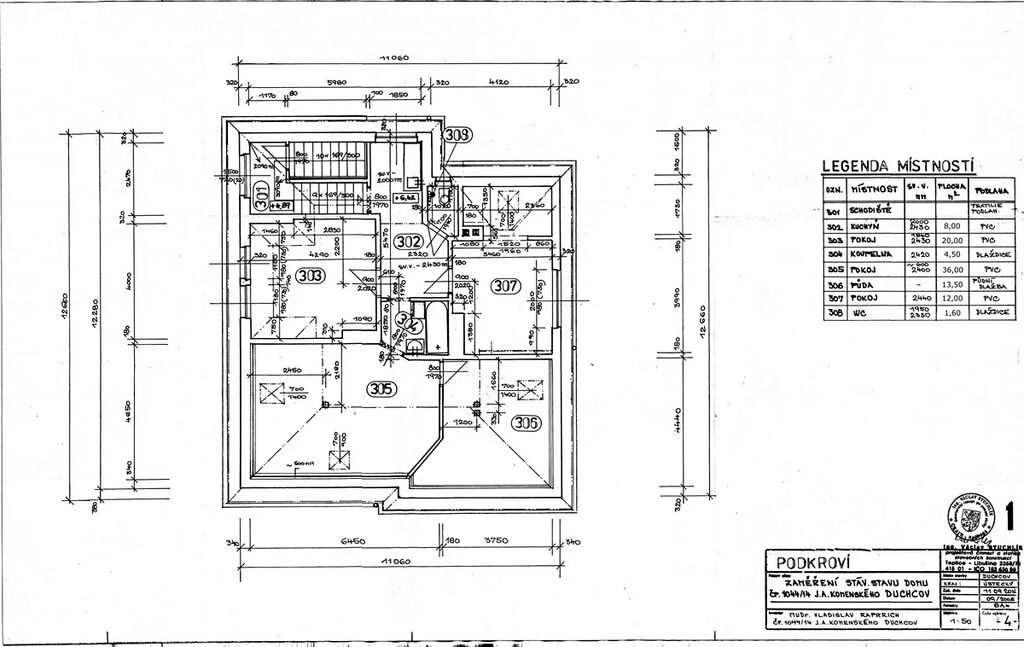 - podkroví (95,6 m2): 4 místnosti, kuchyňský kout v chodbě, koupelna, WC další samostatná bytová jednotka.