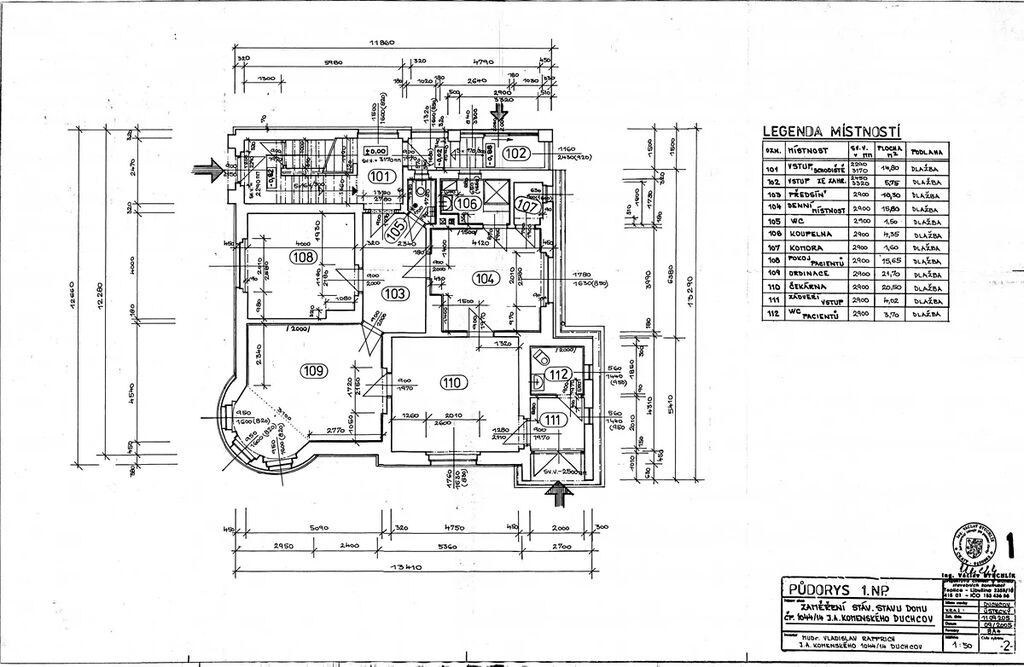 - 1. patro (102,1 m2): 3 místnosti, kuchyně, koupelna, WC, chodba plnohodnotná bytová jednotka.