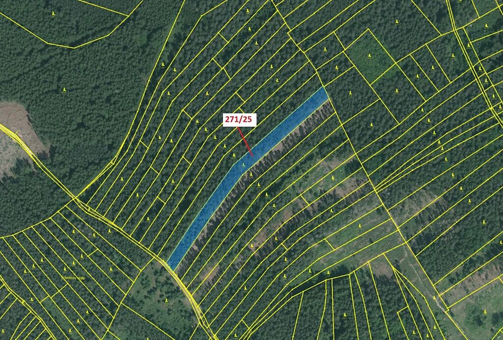 Lesní pozemek o výměře 5 905 m2, parcelní číslo 271/25, podíl 1/1, katastrální území Milavče, obec Milavče, obec s rozšířenou působností Domažlice, okres Domažlice, Plzeňský kraj. Po těžbě.