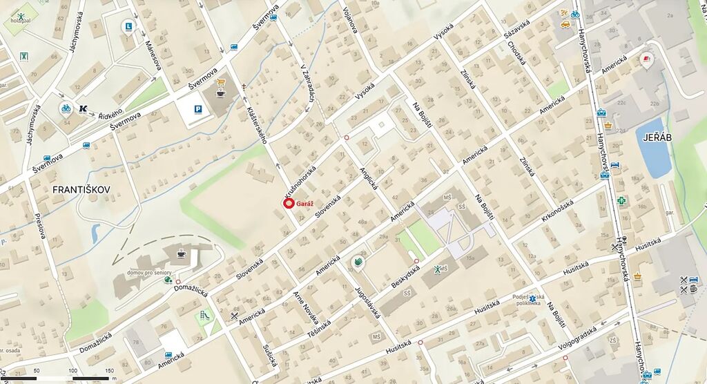 Garáž se nachází na adrese ul. Krušnohorská, Liberec – Jeřáb (přesné umístění garáže je na mapě ve fotodokumentaci).