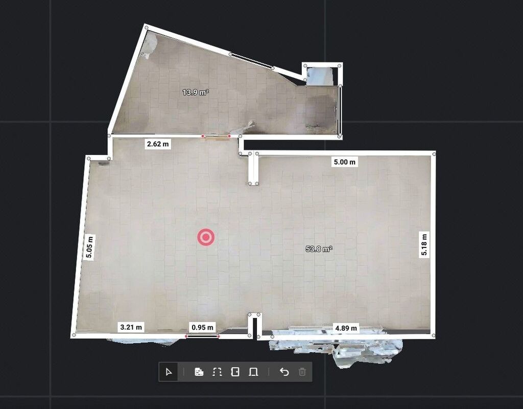 Dispozice: hlavní prodejní prostor (cca 54m2) a zázemí/sklad/kancelář (cca 14m2). WC je společné s druhou prodejnou.
